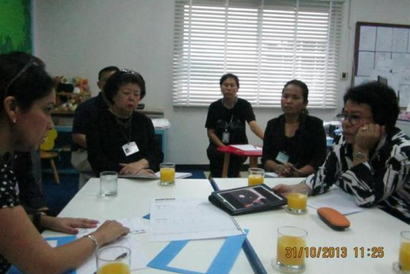 รศ.ดร.สุวิมล อุดมพิริยะศักย์ ที่ปรึกษาศูนย์การศึกษาพิเศษ อ.ทยุ เกื้อสกุล หัวหน้ากลุ่มงานบริการช่วยเหลือระยะแรกเริ่มฯ ศูนย์การศึกษาพิเศษ และอ.อิสรีย์ เฉยแดง ให้แนวทางการเรียนการสอนสำหรับเด็กที่มีความบกพร่องทางการเห็นให้กับผู้ปกครอง ครูและผู้บริหาร โรงเรียนนานาชาติโรสมารี (Rose Marie Academy International) จังหวัดนนทบุรี วันที่ 31 ตุลาคม 2556 เวลา 09.30 – 13.00 น. (admin:ณฐมน มาลัยโรจน์ศิริ)
