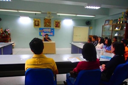 ผศ.กานดา โต๊ะถม หัวหน้าศูนย์การศึกษาพิเศษ โรงเรียนสาธิตละอออุทิศ ปฐมนิเทศและกล่าวต้อนรับ ผู้ปกครองนักเรียนใหม่ปีการศึกษา 2557 ณ ห้องประชุมการศึกษาพิเศษ เมื่อวันที่ 27 พฤกษภาคม 2557 (admin:ณฐมน มาลัยโรจน์ศิริ)