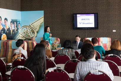 หลักสูตรธุรกิจการบิน  โรงเรียนการท่องเที่ยวและการบริการ มหาวิทยาลัยราชภัฏสวนดุสิต  จัดโครงการพัฒนาศักยภาพอาจารย์ ประจำปีการศึกษา 2558 โดยได้รับเกียรติจาก วิทยากร บริษัท การบินไทย จำกัด (มหาชน)  คุณสุวนิษฐ์ ปทุมเทวาภิบาล  ผู้จัดการกองวิเคราะห์ข้อมูลการบริการ และคุณจักรพันธ์ ตั้งอนันตกิจ พนักงานต้อนรับบนเครื่องบิน (เจ้าของผลงานหนังสือ ศิลปะการพับผ้าหลากสไตล์ และศิลปะการพับผ้ารูปดอกไม้) เป็นวิทยากรในการฝึกอบรมบรรยายภาพรวมการบริการชั้นธุรกิจและเฟิร์สท์คลาส และการพับผ้าเป็นนกยุง ประดับโต๊ะ พับดอกกุหลาบใส่แก้ว ผ้าผูกคอขวดแชมเปญ ผ้าผูกคอหม้อชากาแฟ  การพับผ้าเป็นรูปดอกบัวขนาดต่าง ๆ และการพับผ้าเพื่อตกแต่งห้องน้ำ ฯลฯ โดยมี อาจารย์นิพนธ์ ระวียัน ประธานกรรมการบริหารหลักสูตรฯ และคณาจารย์เข้าร่วม วันที่24 เมษายน 2558 ณ ณ Mock-up Room อาคาร 32(ภาพ/ข่าว :พศิน)