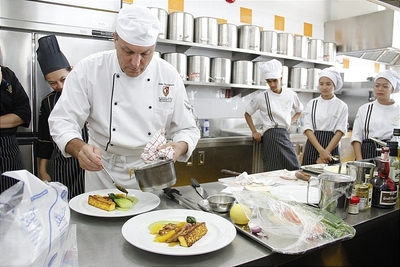 หลักสูตรเทคโนโลยีการประกอบอาหารและการบริการ โรงเรียนการเรือน มหาวิทยาลัยสวนดุสิต ศูนย์การศึกษานอกที่ตั้ง สุพรรณบุรี เข้าร่วมโครงการเชฟสัญจร เพื่อพัฒนาศักยภาพบุคลากรและนักศึกษาสายอาหาร โดยอาจารย์แลกเปลี่ยนชาวนิวซีแลนด์ Mr.THOMPSON DALE อาจารย์ผู้เชี่ยวชาญด้านอาหารจาก Auckland University of Technology (AuT) ประเทศนิวซีแลนด์ สาธิตการประกอบอาหารให้กับนักศึกษา และคณาจารย์ในหลักสูตร ณ ห้องปฏิบัติการประกอบอาหาร อาคารแววเที่ยงธรรม มหาวิทยาลัยสวนดุสิต ศูนย์ฯสุพรรณบุรี เมื่อวันจันทร์ที่ 30 พฤศจิกายน – 1 ธันวาคม 2558