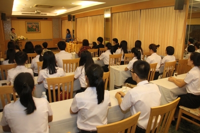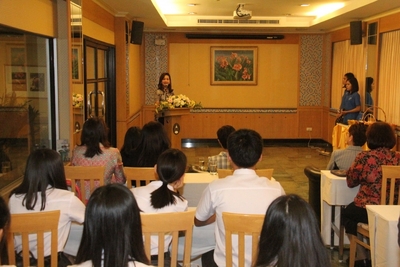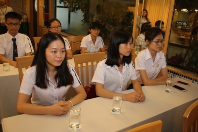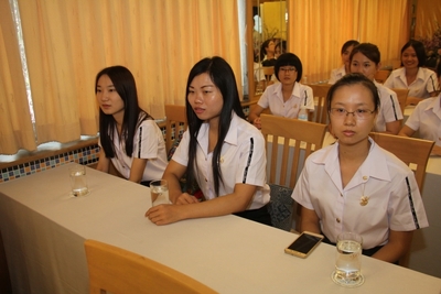 ดร.สุวมาลย์  ม่วงประเสริฐ รองอธิการบดีฝ่ายวิชาการ ดร.พรชณิตว์ แก้วเนตร  รองอธิการบดีฝ่ายกิจการต่างประเทศและลูกค้าสัมพันธ์ พร้อมด้วย ผศ.ดร.ฉัตรแก้ว ใจงาม คณบดีคณะมนุษยศาสตร์และสังคมศาสตร์  ดร.ศิริ ชะระอ่ำ ผู้อำนวยการกองวิเทศสัมพันธ์ และคณาจารย์ มหาวิทยาลัยสวนดุสิต ร่วมต้อนรับนักศึกษาชาวจีน จากมหาวิทยาลัยครูกวางสี มณฑลกวางสี ประเทศสาธารณรัฐประชาชนจีน ในโอกาสมาศึกษาหลักสูตรภาษาไทย คณะมนุษยศาสตร์และสังคมศาสตร์ มหาวิทยาลัยสวนดุสิต ระยะเวลา 9 เดือน   ณ ห้องเกี้ยวเกล้า โรงแรมสวนดุสิต เพลส มหาวิทยาลัยสวนดุสิต วันที่ 4 สิงหาคม 2559 (ภาพ/ข่าว:พิพัฒน์พล  เพ็ญเกิด)