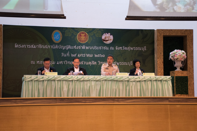 ดร.วรานี เวสสุนทรเทพ รองอธิการบดีฝ่ายวิทยาเขตสุพรรณบุรี และอาจารย์วรเวชช์ อ่อนน้อม ผู้อำนวยการสำนักงานวิทยาเขตสุพรรณบุรี ให้การต้อนรับสมาชิกสภานิติบัญญัติแห่งชาติ ที่ได้เดินทางมาจัดโครงการสมาชิกสภานิติบัญญัติแห่งชาติพบประชาชน จังหวัดสุพรรณบุรี โดยใช้พื้นที่ของมหาวิทยาลัยสวนดุสิต วิทยาเขตสุพรรณบุรีจัดโครงการดังกล่าว โดยมีนายพิภพ บุญธรรม รองผู้ว่าราชการจังหวัดสุพรรณบุรี กล่าวต้อนรับและเปิดโครงการฯ ในวันที่ 29 มกราคม 2560 เวลา 9.00-12.00 น. ณ หอประชุมวิทยาเขตสุพรรณบุรี
