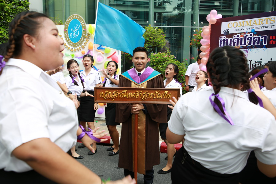มหาวิทยาลัยสวนดุสิต ซ้อมใหญ่ พิธีพระราชทานปริญญาบัตร ประจำปีการศึกษา 2559-2560 โดยได้รับเกียรติจาก ผศ.ดร.พิทักษ์ จันทร์เจริญ รองอธิการบดีฝ่ายบริหาร และ รศ.พัชรี สวนแก้ว รองอธิการบดีฝ่ายกิจการนักศึกษา กล่าวแสดงความยินดีกับบัณฑิตใหม่ ซึ่งในวันแรก เป็นการซ้อมของบัณฑิตระดับปริญญาตรี หลักสูตรศึกษาศาสตรบัณฑิต นิติศาสตรบัณฑิต พยาบาลศาสตรบัณฑิต บริหารธุรกิจบัณฑิต นิเทศศาสตรบัณฑิต บัญชีบัณฑิต และวิทยาศาสตรบัณฑิต ณ อาคารรักตะกนิษฐ มหาวิทยาลัยสวนดุสิต วันที่ 18 มิถุนายน พ.ศ. 2562 Gallery 1/2
