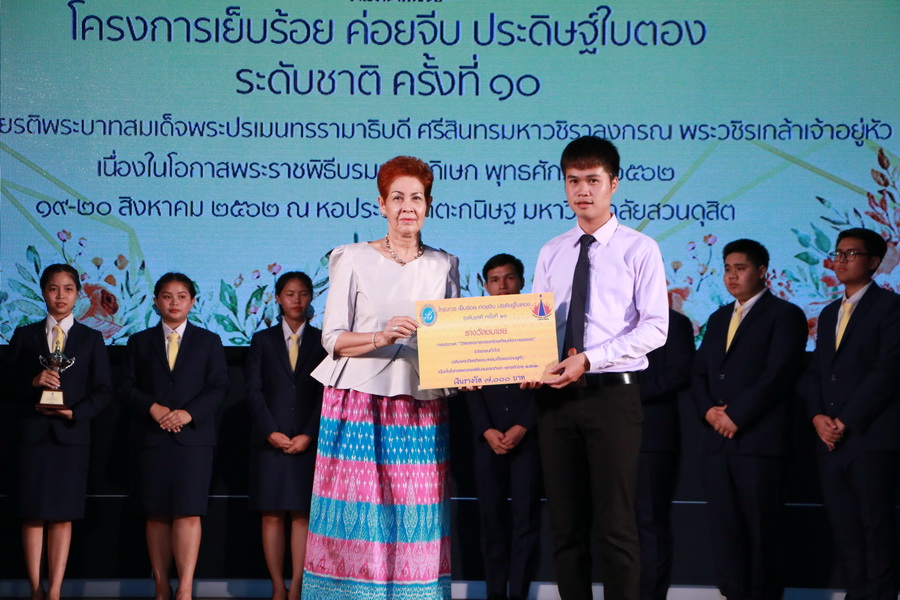 มหาวิทยาลัยสวนดุสิต จัดโครงการเย็บร้อย ค่อยจีบ ประดิษฐ์ใบตอง ระดับชาติ ครั้งที่ 10 เฉลิมพระเกียรติ พระบาทสมเด็จพระปรเมนทรรามาธิบดีศรีสินทรมหาวชิราลงกรณฯ พระวชิรเกล้าเจ้าอยู่หัว เนื่องในโอกาสมหามงคลพระราชพิธีบรมราชาภิเษก พุทธศักราช 2562 ชิงถ้วยพระราชทานสมเด็จพระนางเจ้าสิริกิติ์ พระบรมราชินีนาถ พระบรมราชชนนีพันปีหลวง จัดขึ้นโดยกองพัฒนานักศึกษา มหาวิทยาลัยสวนดุสิต เพื่อเป็นการสร้างเครือข่ายความร่วมมือด้านศิลปวัฒนธรรม และเป็นฐานข้อมูลในการเผยแพร่ศิลปวัฒนธรรมไทย โดยมีสถานศึกษาและผู้สนใจเข้าร่วมการประกวดกว่า 80 ทีมทั่วประเทศ ทั้งนี้ยังได้รับเกียรติจาก รศ.พัชรี สวนแก้ว รองอธิการบดีฝ่ายกิจการนักศึกษา มหาวิทยาลัยสวนดุสิต กล่าวรายงานและวัตถุประสงค์ในการจัดโครงการในครั้งนี้ อีกทั้งยังได้รับเกียรติจาก คุณโรจนา ผลพันธิน ที่ปรึกษาอธิการบดี ฝ่ายศิลปวัฒนธรรมและกีฬา มหาวิทยาลัยสวนดุสิต เป็นประธานมอบรางวัลแก่ทีมที่ชนะการประกวดในแต่ละประเภทดังนี้ โรงเรียนเทศบาล 5 บ้านห้วยทรายใต้ คว้ารางวัลชนะเลิศ การประกวด “วิจิตรตระการกรองร้อยมาลัยชายเดียว ระดับประถมศึกษา” โรงเรียนประโคนชัยพิทยาคม (ทีม ด.ช.ธัชพล วงษ์ชมพู) คว้ารางวัลชนะเลิศ การประกวด“วิจิตรตระการกรองร้อยกระทงดอกไม้ ธูป เทียน แพ ระดับมัธยมศึกษาตอนต้น” โรงเรียนประโคนชัยพิทยาคม (ทีม นางสาวณิชาภัทร ห่วงประโคน) วัลรางวัลชนะเลิศ การประกวด “วิจิตรตระการกรองร้อยสำรับขนมมงคล ระดับมัธยมศึกษาตอนปลาย” วิทยาลัยอาชีวศึกษาสุพรรณบุรี คว้ารางวัลชนะเลิศ การประกวด “วิจิตรตระการกรองร้อยกระเช้าดอกไม้ เฉลิมพระเกียรติ ระดับประกาศนียบัตรวิชาชีพ” วิทยาลัยเทคนิคระยอง คว้ารางวัลชนะเลิศ การประกวด “วิจิตรตระการกรองร้อยพานพุ่ม ระดับประกาศนียบัตรวิชาชีพชั้นสูง” มหาวิทยาลัยสวนดุสิต คว้ารางวัลชนะเลิศ การประกวด “วิจิตรตระการกรองร้อยบายศรี 3 ชั้น ระดับอุดมศึกษา” และ มหาวิทยาลัยเทคโนโลยีราชมงคลกรุงเทพ คว้ารางวัลชนะเลิศ การประกวด “วิจิตรตระการกรองร้อยเทียนชัยถวายพระพร ระดับประชาชนทั่วไป” ณ อาคารรักตะกนิษฐ มหาวิทยาลัยสวนดุสิต ระหว่าง วันที่ 19-20 สิงหาคม พ.ศ. 2562 (ภาพ/ข่าว:พิพัฒน์พล เพ็ญเกิด)