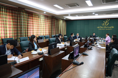 นายถนอม อินทรกำเนิด ประธานกรรมการปฏิบัติหน้าที่แทนสภามหาวิทยาลัยราชภัฏสุรินทร์ และผู้ช่วยศาสตราจารย์กนก โตสุรัตน์ ปฏิบัติหน้าที่อธิการบดีมหาวิทยาลัยราชภัฏสุรินทร์ พร้อม คณะศึกษาดูงานการจัดประชุมสภามหาวิทยาลัยสวนดุสิตของสำนักงานเลขานุการสภามหาวิทยาลัยสวนดุสิต โดยมี ดร.สุวมาลย์ ม่วงประเสริฐ รองอธิการบดีฝ่ายวิชาการ ในฐานะเลขานุการ สภามหาวิทยาลัยสวนดุสิต กล่าวต้อนรับคณะศึกษาดูงานและบรรยายเกี่ยวกับ “ระบบการจัดประชุม สภามหาวิทยาลัยสวนดุสิต” พร้อมร่วมแลกเปลี่ยนความคิดเห็น และตอบข้อซักถาม เมื่อวันพุธที่ 11 พฤศจิกายน 2563 ณ ห้องประชุมลำพอง 2 มหาวิทยาลัยสวนดุสิต