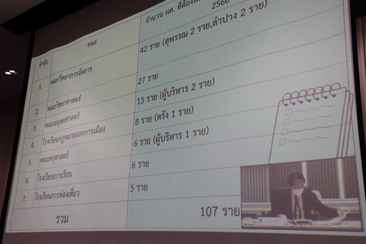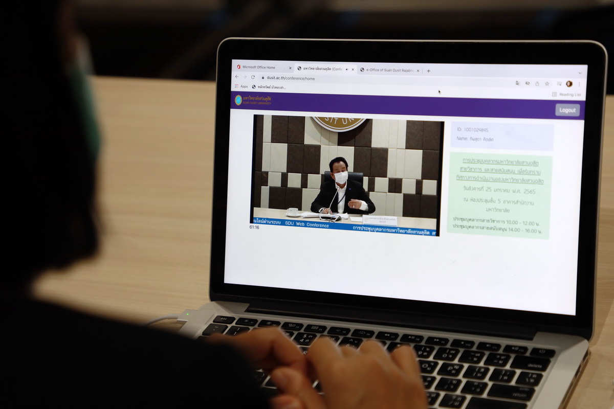 รศ.ดร.ศิโรจน์ ผลพันธิน อธิการบดีมหาวิทยาลัยสวนดุสิต เป็นประธานในการประชุมบุคลากรมหาวิทยาลัยสวนดุสิต สายวิชาการ และสายสนับสนุน (กรุงเทพฯ วิทยาเขต และศูนย์การศึกษา) เพื่อมอบนโยบายทิศทางการดำเนินงานของมหาวิทยาลัยสวนดุสิต ณ ห้องประชุมชั้น 5 อาคารสำนักงานมหาวิทยาลัย และผ่านระบบ SDU Web Conference วันที่ 25 มกราคม 2565