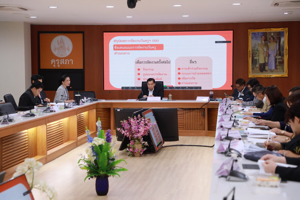 สำนักงานเลขาธิการคุรุสภา จัดประชุมคณะกรรมการประชาสัมพันธ์งานวันครู ครั้งที่ 68 พ.ศ.2567 ครั้งที่ 1/2566 โดย รศ.ดร.สุขุม เฉลยทรัพย์ ประธานที่ปรึกษาอธิการบดี มหาวิทยาลัยสวนดุสิต เป็นประธานการประชุม โดยมีคณะผู้บริหาร อาจารย์ บุคลากร มหาวิทยาลัยสวนดุสิต เข้าร่วมประชุม ซึ่งมีวาระการประชุม ได้แก่ แผนการประชาสัมพันธ์งานวันครู ครั้งที่ 68 พ.ศ.2567 การดำเนินการจัดทำหนังสือที่ระลึกวันครู ครั้งที่ 68 พ.ศ.2567 การแต่งตั้งคณะกรรมการจัดประกวดสปอตวิทยุ และสปอตโทรทัศน์วันครู ประจำปี 2567 และรายงานผลการประชาสัมพันธ์งานวันครู ครั้งที่ 67 พ.ศ.2566 โดยจัดประชุม ณ ห้องประชุมไทยาจารย์ ชั้น 3 อาคาร 2 สำนักงานเลขาธิการคุรุรสภา และออนไลน์ผ่านระบบ Zoom