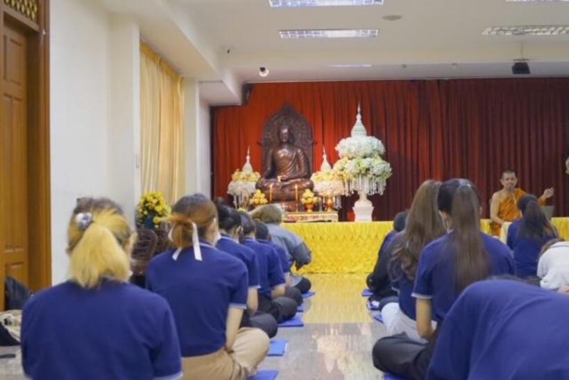 สาขาวิชานิเทศศาสตร์นวัตกรรมและผุ้ประกอบการธุรกิจ ร่วมกับ สาขาวิชาเลขานุการทางการแพทย์ คณะวิทยาการจัดการ นำโดยผู้ช่วยศาสตราจารย์ ดร.สุวลักษณ์ ห่วงเย็น ประธานโครงการฯ ผู้ช่วยศาตราจารย์ ดร.รรินทร วสุนันต์ คณะกรรมการฯ และนักศึกษานิเทศศาสตร์ฯ รหัส 65 ได้เข้าร่วมกิจกรรมอบรมคุณธรรม จริยธรรม หัวข้อ “การสร้างคุณค่าในตนเองสู่เป้าหมายของชีวิตและความรับผิดชอบสังคมเพื่อพลเมืองโลกที่ดีในศตวรรษที่ 21” วิทยากรโดย พระครูปลัดสุวัฒนสัสจคุณ, (ดร.ธีรวิทย์ ฉันฺทวิชฺโช) ผู้ช่วยเจ้าอาวาสวัดราชาธิวาสวิหาร ผู้ช่วยอธิการบดีด้านสื่อสารองค์กรและบริการวิชาการ มหาวิทยาลัยมหามกุฎราชวิทยาลัย อาจารย์ประจำหลักสูตรบริหารการศึกษา มหาบัณฑิตและดุษฎีบัณฑิต มหาวิทยาลัยมหามกุฎราชวิทยาลัย รักษาการแทนผู้อำนวยการศูนย์บริการวิชาการ มหาวิทยาลัยมหามกุฎราชวิทยาลัย ซึ่งกิจกรรมอบรมนี้เป็นการพัฒนาในรูปแบบต่าง ๆ การบริการวิชาการ และการทำนุบำรุงศิลปวัฒนธรรมและความเป็นไทย ในการจัดการเรียนการสอนของรายวิชา การสร้างคุณค่าในตัวเองสู่เป้าหมายของชีวิต และส่งเสริมการพัฒนาทักษะ บุคลิกภายใน ภายนอก การดำเนินชีวิตอย่างเห็นคุณค่าของตนเอง หลักการพัฒนาตนเองตามกรอบทักษะและแนวคิดทัศนคติใหม่ๆ ในการดำเนินชีวิตใช้ชีวิตรู้อย่างต่อเนื่อง และปรับตนเอง Leadership ,Emotion, Intelligence พึ่งพาตนเอง การครองตนด้วย Framework ของศตวรรษที่ 21 ส่งเสริม soft skill การใช้ชีวิตเป็นพลเมืองโลกที่ดี มีจิตบริการเพื่อสังคม และ Conscious Mind Fullness ปรับใช้ในการประกอบอาชีพและการดำเนินชีวิตนำไปสู่ความสุข อีกทั้ง กระตุ้นและส่งเสริมให้นักศึกษาได้รับการปลูกฝังด้านคุณธรรม จริยธรรม ซึ่งกิจกรรมได้จัดให้มีขึ้นเมื่อวันพฤหัสบดีที่ 9 พฤศจิกายน 2566 ณ วัดราชาธิวาสวิหาร กรุงเทพมหานคร/ภาพนักศึกษานิเทศศาสตร์ฯ