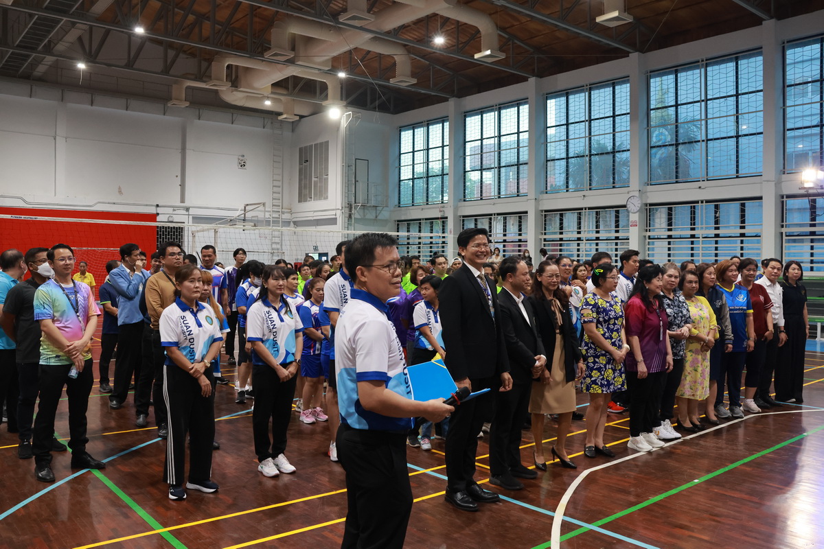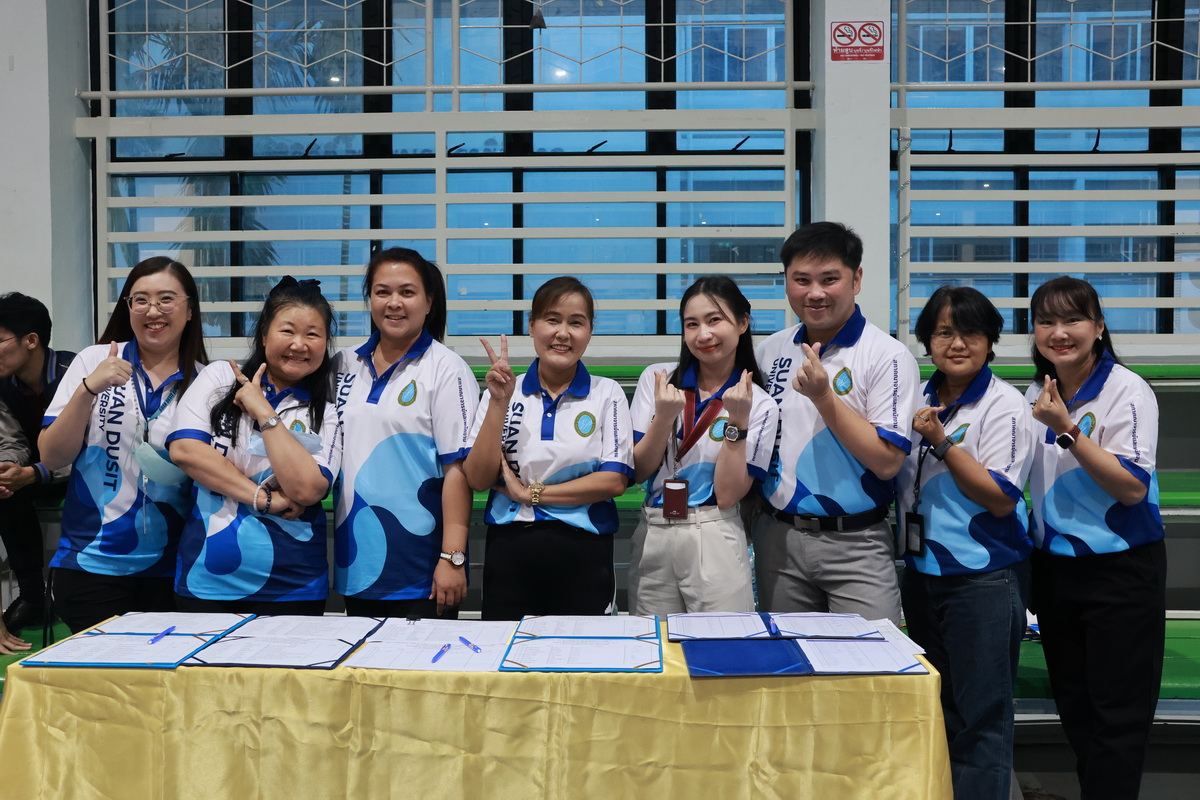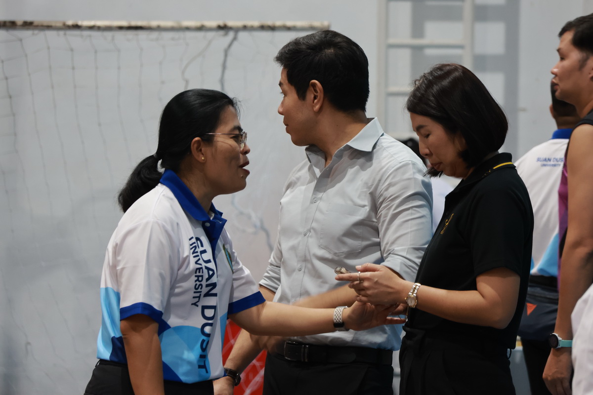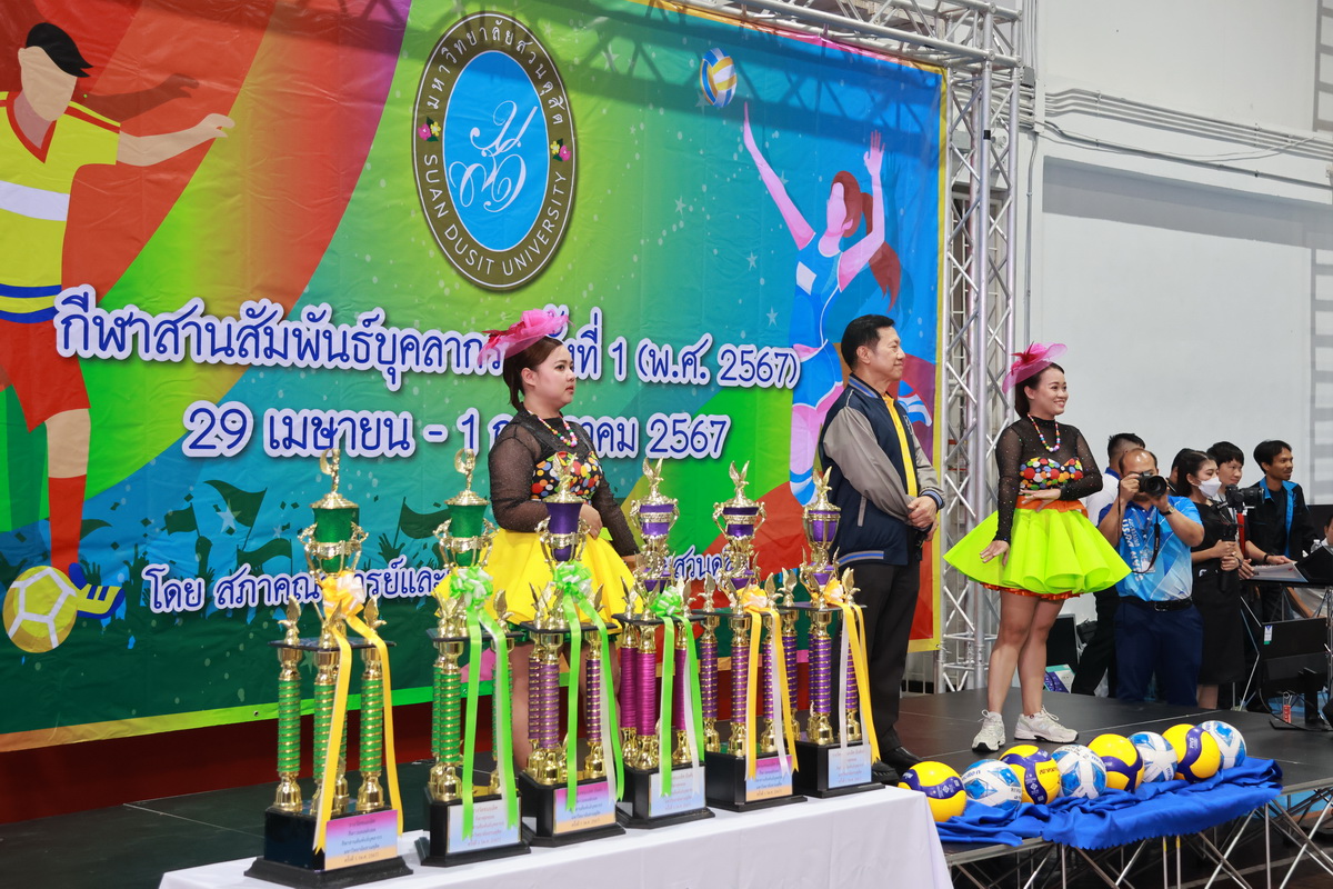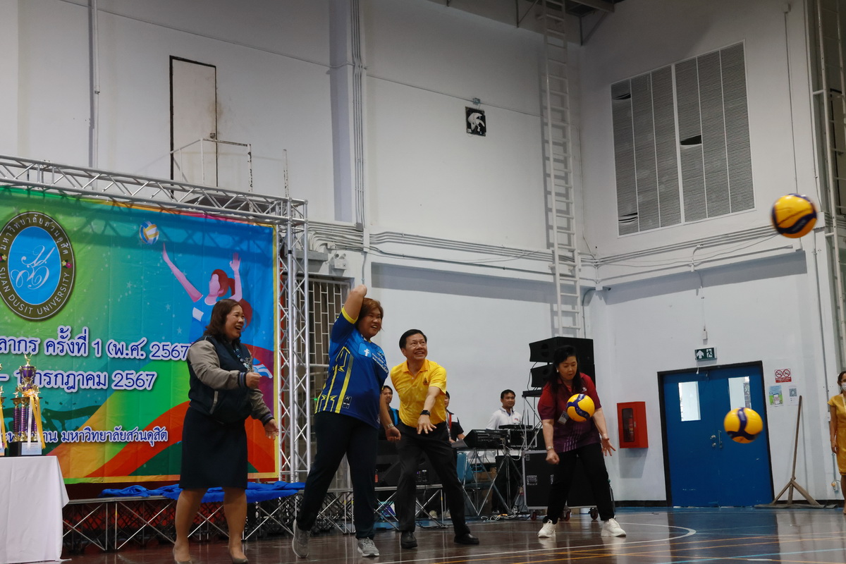 ผศ.ดร.พิทักษ์ จันทร์เจริญ รองอธิการบดีฝ่ายบริหาร มหาวิทยาลัยสวนดุสิต เป็นการประธานเปิดพิธีโครงการเสริมสร้างความสุข ความมั่นคง และความปลอดภัย ในการปฏิบัติงานของประชาคมสวนดุสิต จัดโดย สภาคณาจารย์และพนักงานมหาวิทยาลัย โดยในปี 2567 เป็นกิจกรรมกีฬาสานสัมพันธ์บุคลากร ครั้งที่ 1 มีการแข่งขันกีฬาประเภท 2 ประเภท คือ วอลเลย์บอล (ทีมผสม) จำนวน 8 ทีม และ ฟุตซอล 7 ทีม เริ่มตั้งแต่ 29 เมษายน จนถึง 1 กรกฎาคม 2567 ซึ่งในวันที่ 29 เมษายน 2567 ณ อาคารพลศึกษา ชั้น 3 มหาวิทยาลัยสวนดุสิต มีการแข่งขันกีฬา 2 คู่ ดังนี้