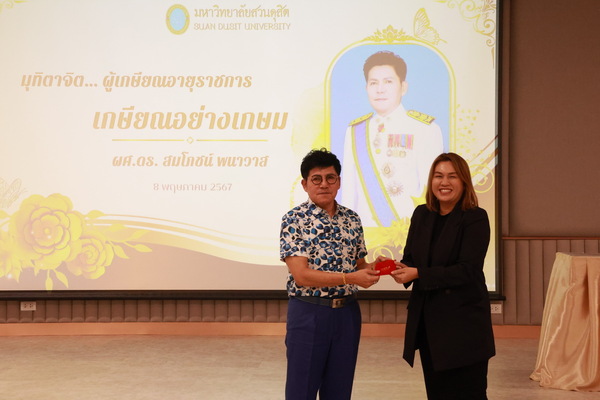 ผศ.ขวัญหทัย เชิดชู ประธานหลักสูตรฯ เป็นประธานกล่าวเปิดงานปัจฉิมนิเทศนักศึกษาชั้นปีที่ 4 หลักสูตรศิลปศาสตรบัณฑิต สาขาวิชาภาษาอังกฤษ คณะมนุษยศาสตร์และสังคมศาสตร์ มหาวิทยาลัยสวนดุสิต และอาจารย์ในหลักสูตรกล่าวให้คำโอวาทแก่นักศึกษา ซึ่งมีกิจกรรมให้นักศึกษาชั้นปีที่ 4 เล่าประสบการณ์การฝึกงาน ความประทับใจต่อหลักสูตรฯ และอาจารย์ ทั้งนี้ ผศ.ดร.สมโภชน์ พนาวาส ให้เกียรติมาเป็นวิทยากรในครั้งนี้ เมื่อวันที่ 8 พฤษภาคม 2567 ณ ห้องประชุม 301 อาคาร ดร.ศิโรจน์ ผลพันธิน ศูนย์พัฒนาทุนมนุษย์