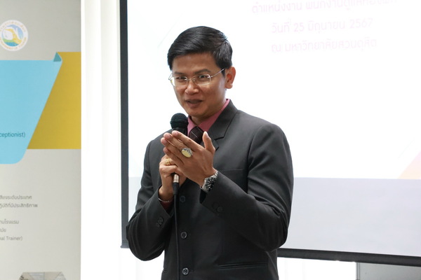 เมื่อวันที่ 25 มิถุนายน 2567 นายจาตุรนต์ ภักดีวานิช อธิบดีกรมการท่องเที่ยว ให้เกียรติกล่าวเปิดงาน หน่วยการประเมิน (Assessment Center) บุคลากรด้านการท่องเที่ยวตามข้อตกลงร่วมว่าด้วยการยอมรับคุณสมบัติบุคลากรด้านการท่องเที่ยวอาเซียน สาขาที่พัก (Hotel Services) แผนกแม่บ้าน (Housekeeping: HK) ตำแหน่งงาน Room Attendant (พนักงานทำความสะอาดห้องพัก) ระดับคุณวุฒิ Certificate III ของ มหาวิทยาลัยสวนดุสิต ซึ่งประเมินโดยโรงเรียนการท่องเที่ยวและการบริการ มหาวิทยาลัยสวนดุสิต โดยมีการสอบข้อเขียน ณ ห้อง 302 ชั้น 3 อาคาร 32 มหาวิทยาลัยสวนดุสิต การสอบสัมภาษณ์ ณ ห้อง 303 ชั้น 3 อาคาร 32 มหาวิทยาลัยสวนดุสิต การสอบภาษาอังกฤษ ณ ห้องคอมพิวเตอร์ ห้อง 11307 ชั้น 3 อาคาร 11 มหาวิทยาลัยสวนดุสิต และการสอบปฏิบัติการทำความสะอาดห้องพัก (2 ท่าน ต่อ 1 ห้องพัก กำหนดเวลา 40 นาที) ณ โรงแรมสวนดุสิต เพลส มหาวิทยาลัยสวนดุสิต