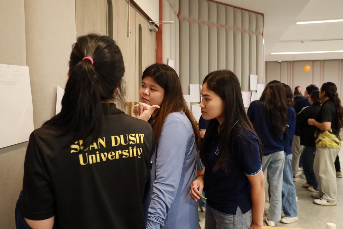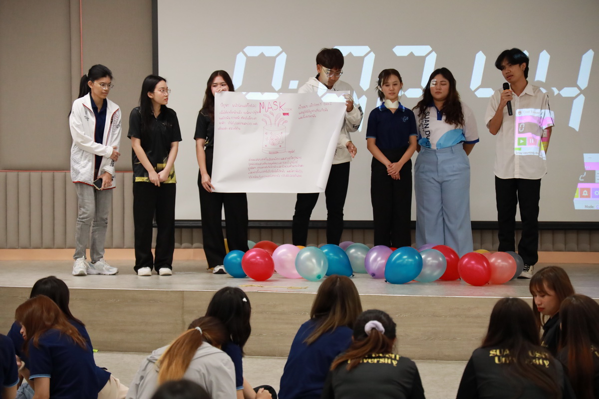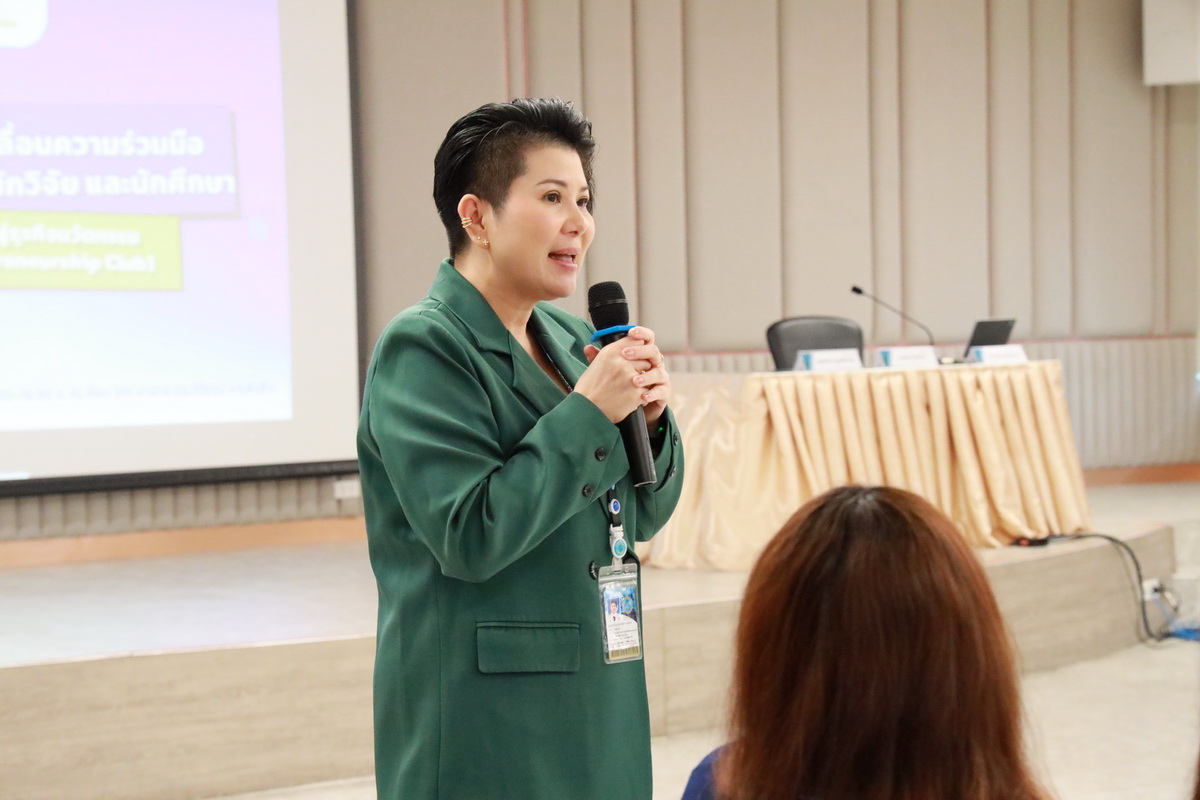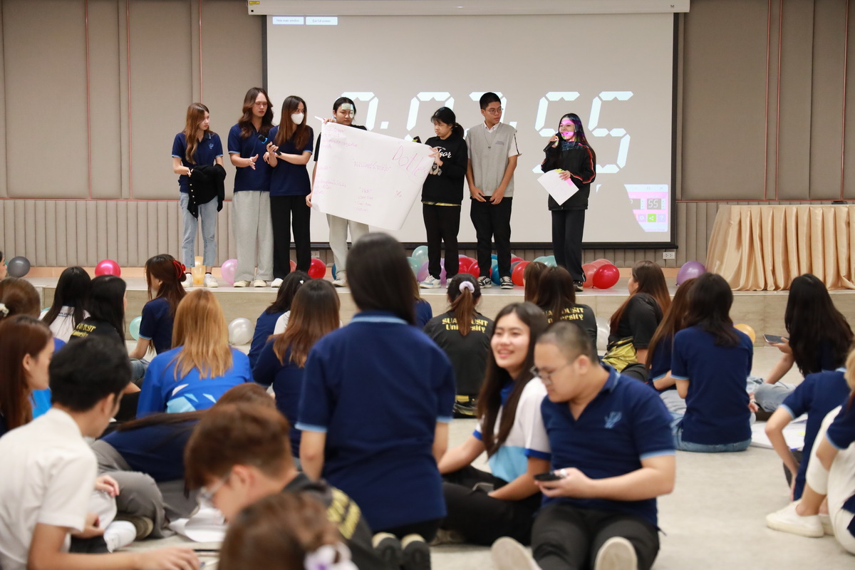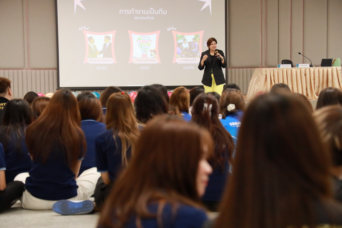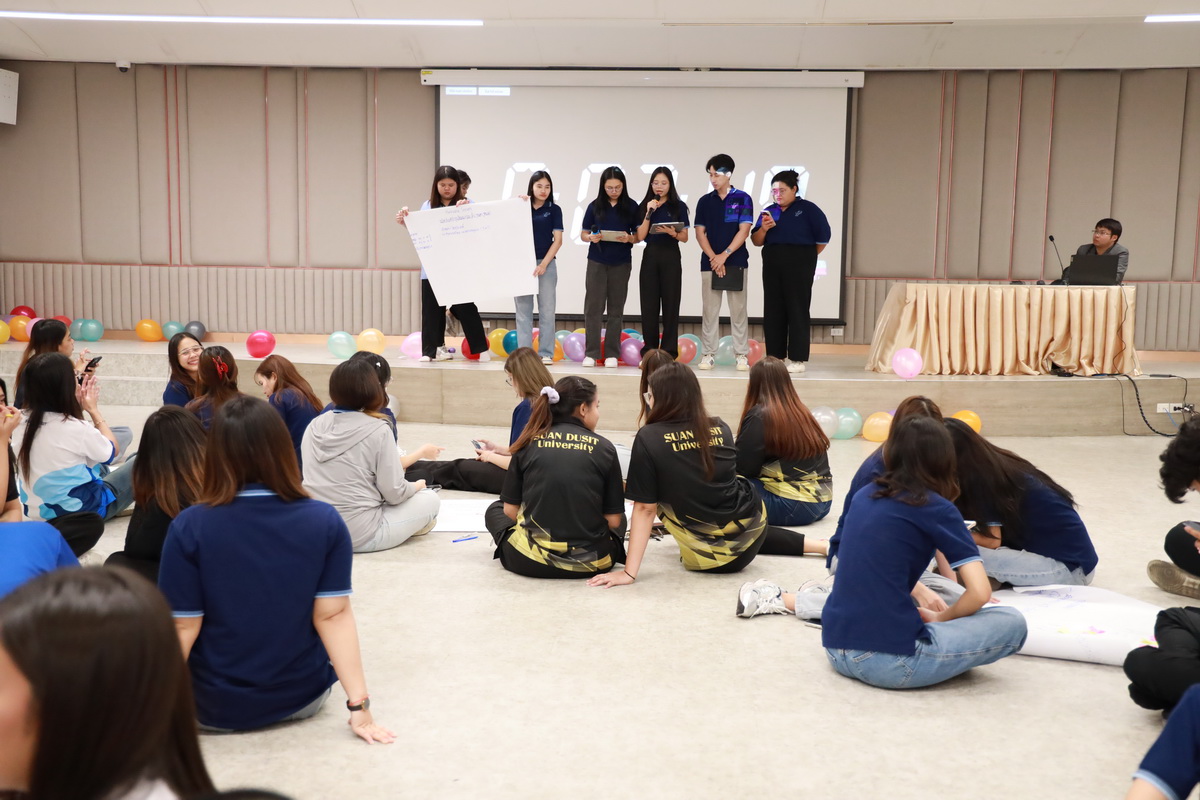 คุณอกนิษฐ์ เลิศสิริศรีสกุล ผู้จัดการหน่วยบ่มเพาะวิสาหกิจ มหาวิทยาลัยสวนดุสิต กล่าวรายละเอียดกิจกรรมโครงการขับเคลื่อนความร่วมมือระหว่างอาจารย์ นักวิจัย และนักศึกษา เพื่อต่อยอดสู่ธุรกิจนวัตกรรม (SDU Entrepreneurship Club) ซึ่งมีกิจกรรมต่างๆ เช่น กิจกรรมละลายพฤติกรรม “เปิดตัว เปิดใจ ยอมรับ” (Ice Breaking) ยอมรับ โดย คุณไพศาล คงสถิตสถาพร ผู้อำนวยการกองประชาสัมพันธ์ มหาวิทยาลัยสวนดุสิต คุณอลิศ พันธ์พรสม กองประชาสัมพันธ์ มหาวิทยาลัยสวนดุสิต ต่อมาเป็นการนำเสนอแนวคิดธุรกิจเครื่องสำอาง โดย ผู้ช่วยศาสตราจารย์โรจนา ศุขะพันธุ์ วิทยากรด้านบริหารธุรกิจ คุณอกนิษฐ์ เลิศสิริศรีสกุล ผู้จัดการหน่วยบ่มเพาะวิสาหกิจ มหาวิทยาลัยสวนดุสิต เมื่อวันที่ 23 กันยายน 2567 ณ ห้อง 301 ชั้น 3 อาคาร ดร.ศิโรจน์ ผลพันธิน