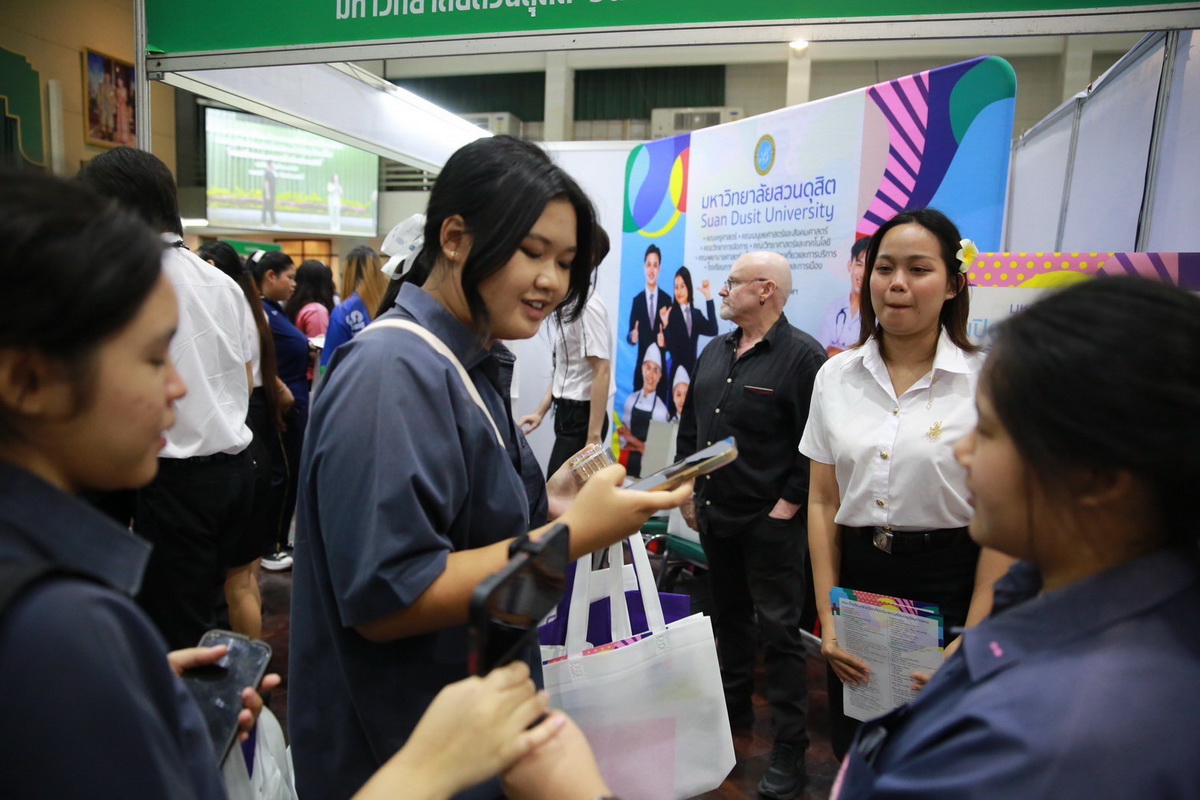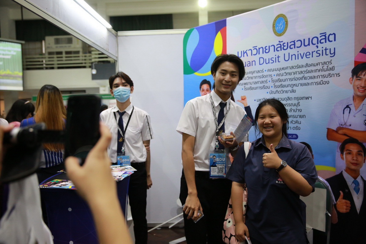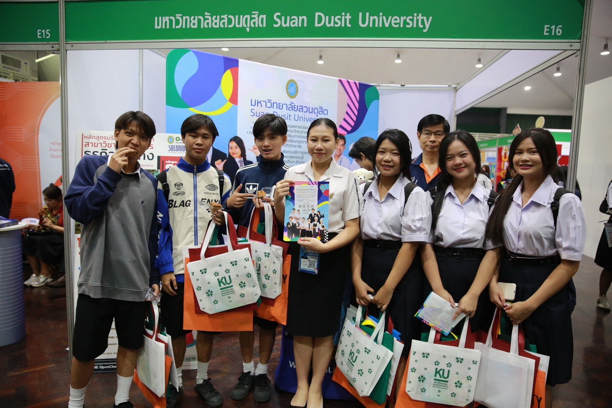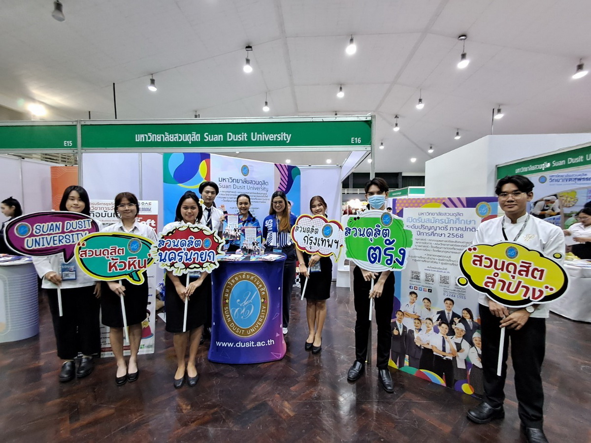 มหาวิทยาลัยสวนดุสิต ร่วมกิจกรรมงานประชาสัมพันธ์การรับสมัครนักศึกษาใหม่ ตลาดนัดหลักสูตรอุดมศึกษาครั้งที่ 27 อาคารจักรพันธ์เพ็ญศิริ มหาวิทยาลัยเกษตรศาสตร์ ระหว่างวันที่ 19 – 20 ธันวาคม 2567 โดยได้รับความร่วมมือจากคณาจารย์และนักศึกษาจาก คณะ โรงเรียน และกองประชาสัมพันธ์ ร่วมให้ข้อมูลแนะนำหลักสูตร/สาขาวิชา และให้คำปรึกษาในการสมัครเข้าเรียนต่อกับมหาวิทยาลัยสวนดุสิต รวมถึงข้อมูลหลักสูตรการจัดการเรียนการสอน ณ วิทยาเขตสุพรรณบุรี ศูนย์การศึกษา ลำปาง นครนายก หัวหิน และตรัง โดยภายในงานมีการจัดกิจกรรมรับของที่ระลึกเป็นขนม Toffee Cake จาก Home Bakery เมื่อวันที่ 19 – 20 ธันวาคม 2567 ณ อาคารจักรพันธ์เพ็ญศิริ มหาวิทยาลัยเกษตรศาสตร์