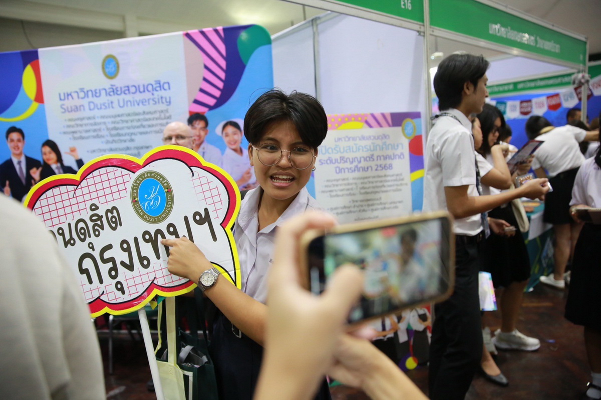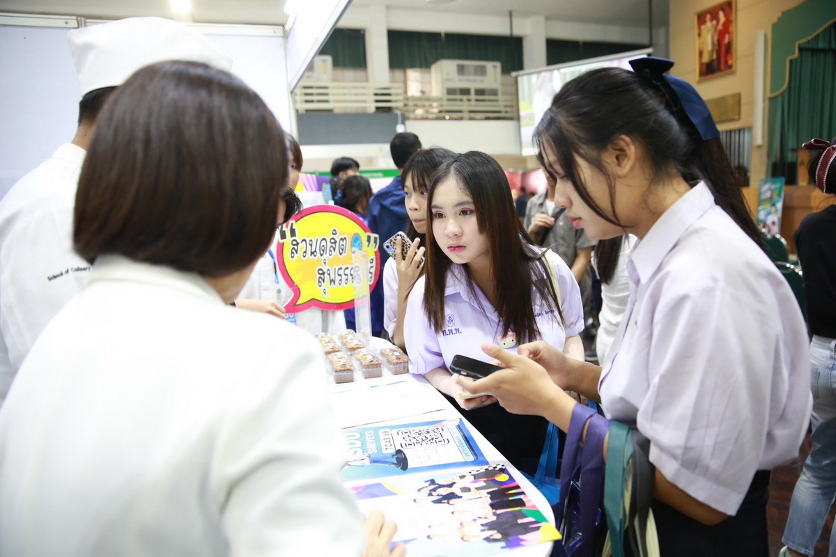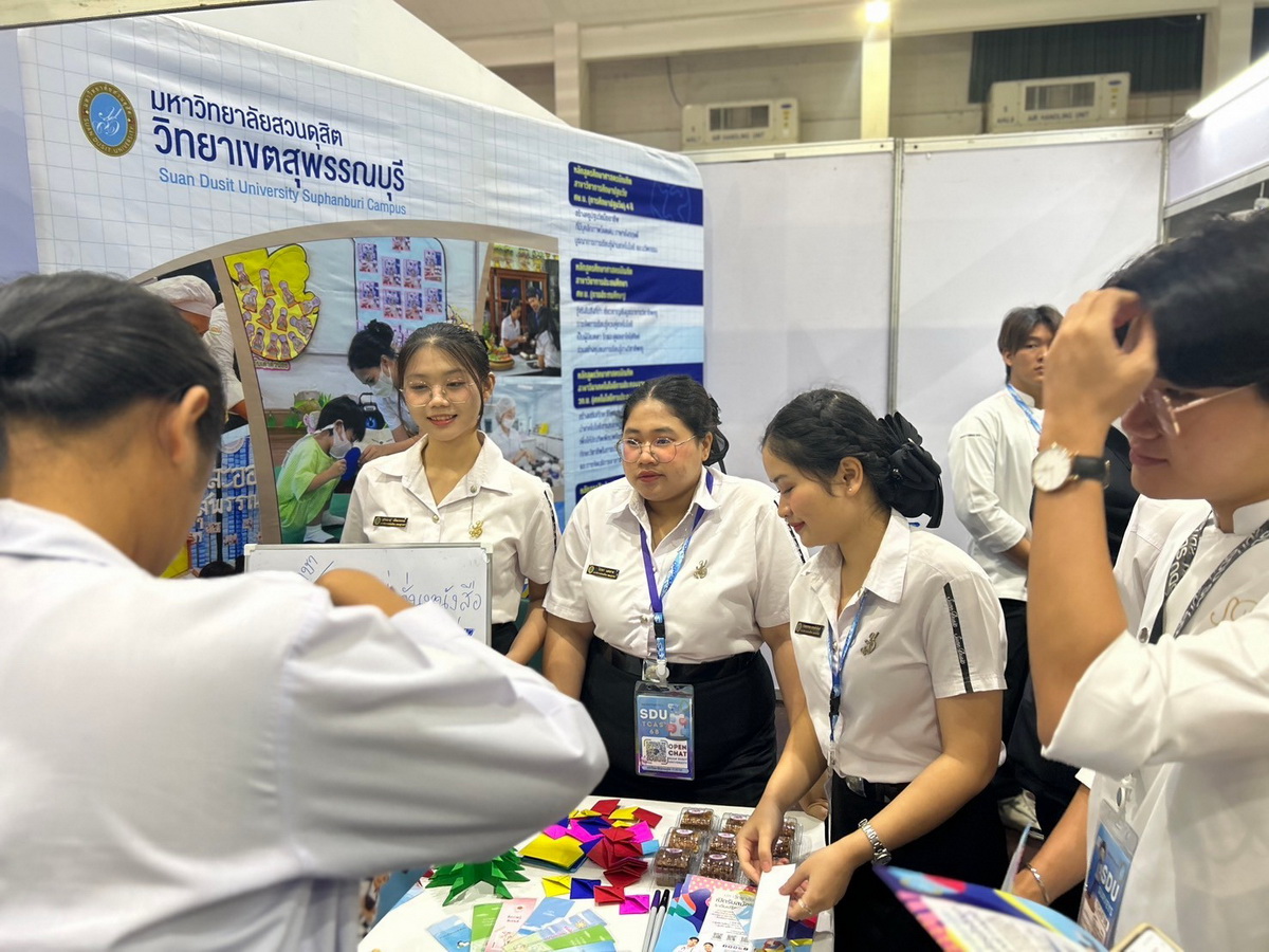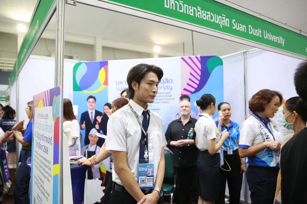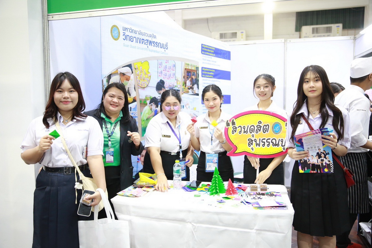 มหาวิทยาลัยสวนดุสิต ร่วมกิจกรรมงานประชาสัมพันธ์การรับสมัครนักศึกษาใหม่ ตลาดนัดหลักสูตรอุดมศึกษาครั้งที่ 27 อาคารจักรพันธ์เพ็ญศิริ มหาวิทยาลัยเกษตรศาสตร์ ระหว่างวันที่ 19 – 20 ธันวาคม 2567 โดยได้รับความร่วมมือจากคณาจารย์และนักศึกษาจาก คณะ โรงเรียน และกองประชาสัมพันธ์ ร่วมให้ข้อมูลแนะนำหลักสูตร/สาขาวิชา และให้คำปรึกษาในการสมัครเข้าเรียนต่อกับมหาวิทยาลัยสวนดุสิต รวมถึงข้อมูลหลักสูตรการจัดการเรียนการสอน ณ วิทยาเขตสุพรรณบุรี ศูนย์การศึกษา ลำปาง นครนายก หัวหิน และตรัง โดยภายในงานมีการจัดกิจกรรมรับของที่ระลึกเป็นขนม Toffee Cake จาก Home Bakery เมื่อวันที่ 19 – 20 ธันวาคม 2567 ณ อาคารจักรพันธ์เพ็ญศิริ มหาวิทยาลัยเกษตรศาสตร์