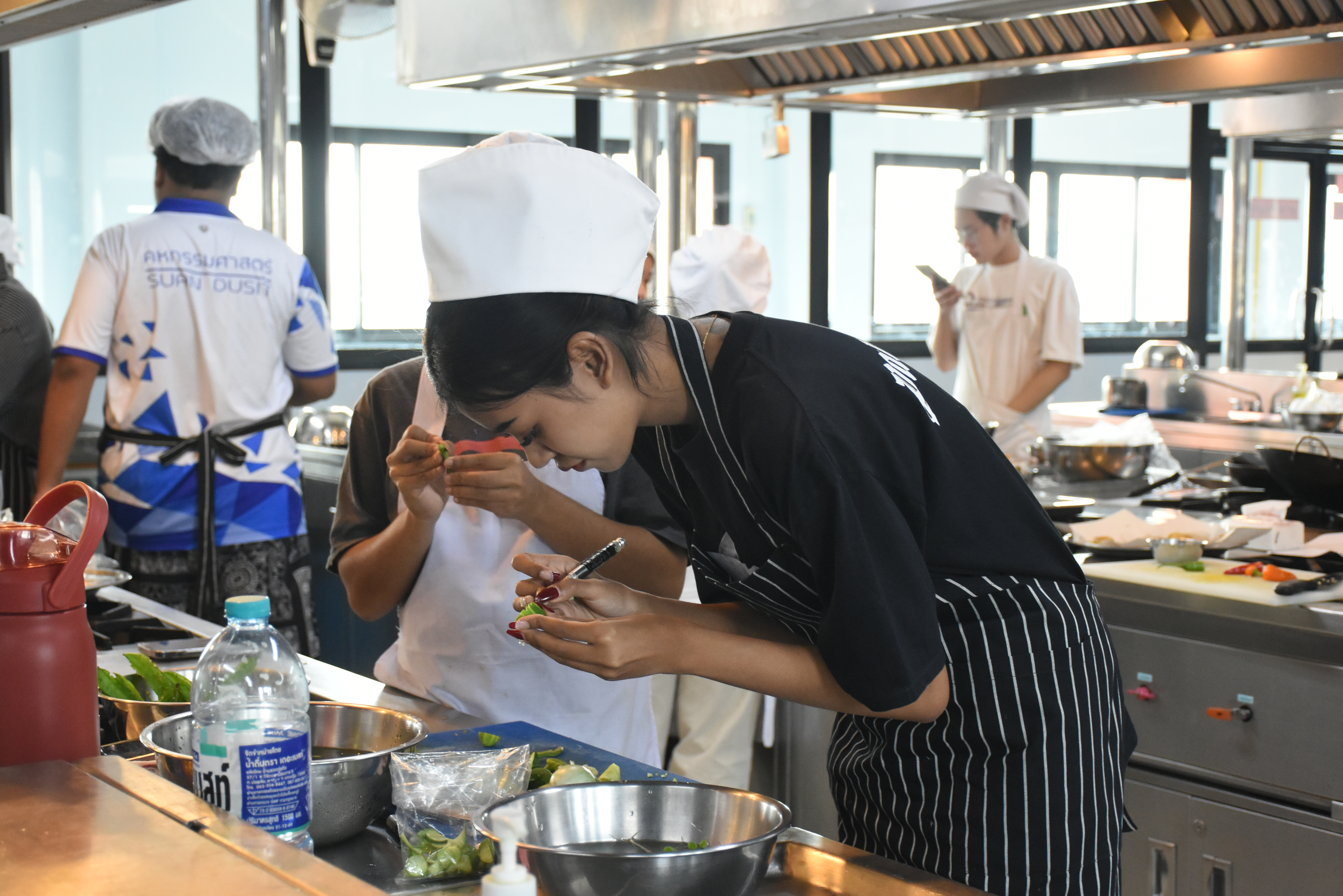 มหาวิทยาลัยสวนดุสิต วิทยาเขตสุพรรณบุรี จัดโครงการอบรม THACCA Academy หลักสูตรเชฟอาหารไทยมืออาชีพ (Professional Thai Chef) ระหว่างวันเสาร์ ที่ 4 มกราคม 2568 ถึงวันอาทิตย์ ที่ 2 กุมภาพันธ์ 2568 โดยในวันพฤหัสบดี ที่ 23 มกราคม 2568 ได้รับเกียรติจาก ผู้ช่วยศาสตราจารย์ พรทวี ธนสัมบัณณ์ อาจารย์ประจำสาขาวิชาเทคโนโลยีการประกอบอาหารและการบริการ เป็นวิทยากรบรรยายและปฏิบัติ ในหัวข้อ อาหารประเภท เครื่องจิ้ม ในเมนู น้ำพริกกะปิ ปลาทูทอด หลนกุ้ง เเละ น้ำพริกอ่องให้แก่ผู้เข้าร่วมโครงการ ในเวลา 08.00-17.00 น. ณ ห้องปฏิบัติการอาหาร ห้อง 5403 ชั้น 4 อาคารแววเที่ยงธรรม มหาวิทยาลัยสวนดุสิต วิทยาเขตสุพรรณบุรี