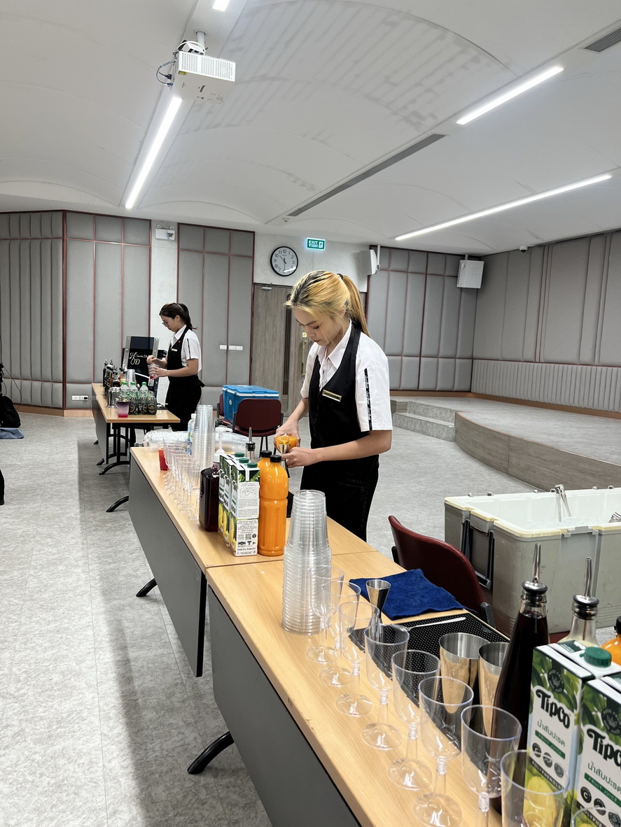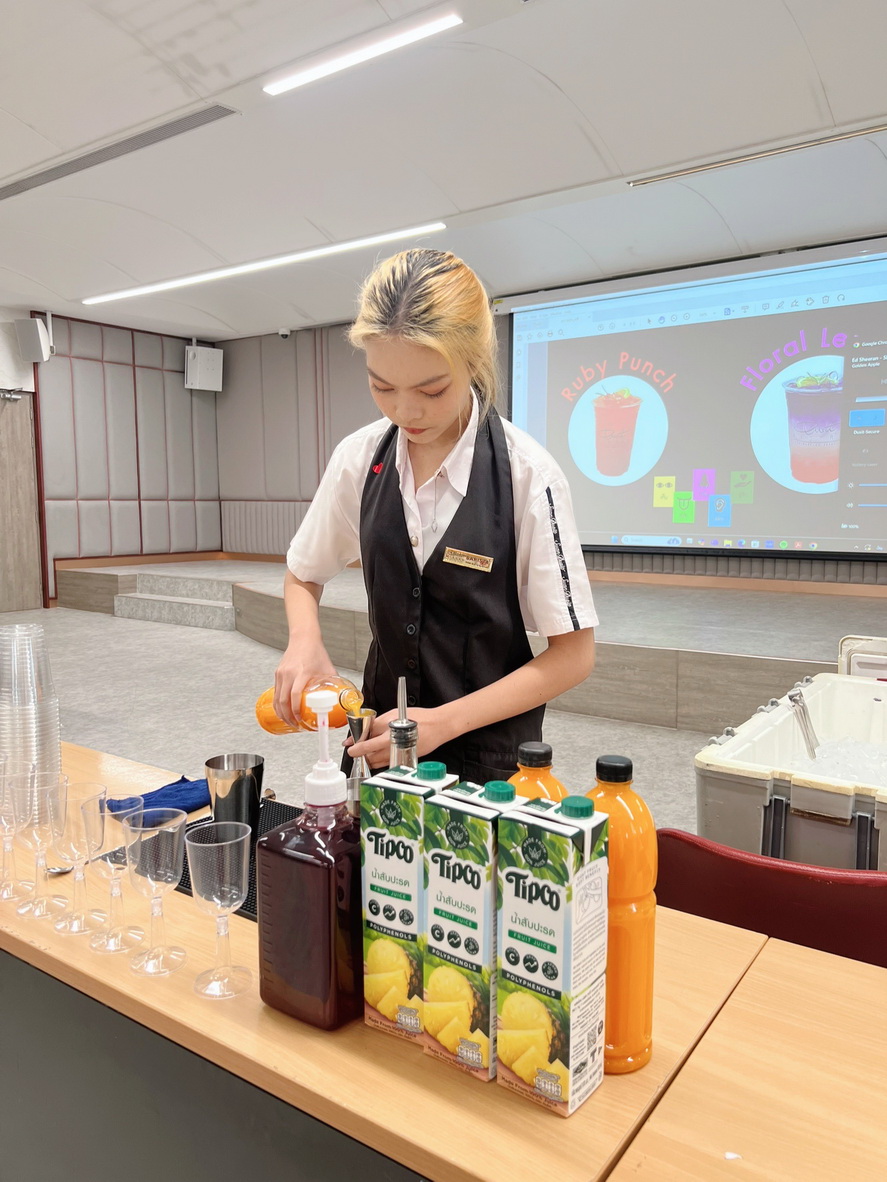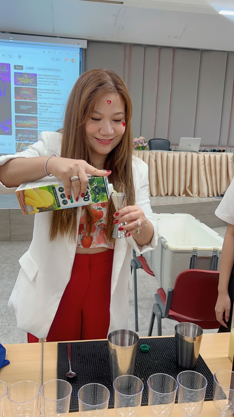 ฐานที่ 2  อาจารย์สุชาดา อภิรัตน์   กิจกรรม “ความสุขผ่านรสชาติเครื่องดื่มที่ตนชอบ”      ณ ห้อง 201 ชั้น 2 อาคาร ดร.ศิโรจน์ ผลพันธิน