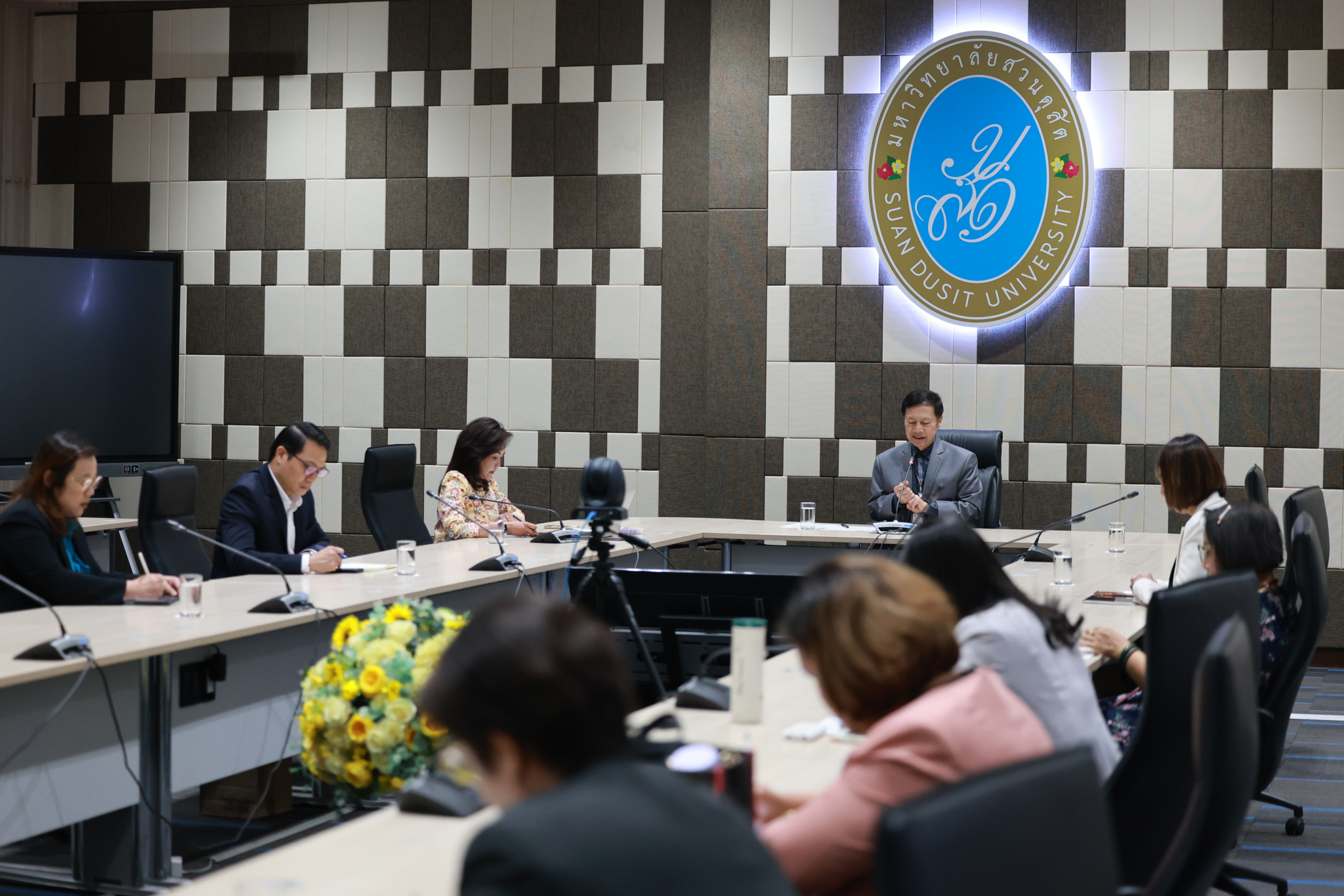 ผศ.ดร.พิทักษ์ จันทร์เจริญ รักษาการแทนอธิการบดี มหาวิทยาลัยสวนดุสิต เป็นประธานการประชุมการจัดกิจกรรม/การเรียนการสอนให้กับนักศึกษาใหม่ รหัส 68 ในช่วงก่อนเปิดภาคการศึกษาที่ 1/2568 และแนวทางการดำเนินงานด้านการจ้างงานนักศึกษา เพื่อให้นักศึกษามีรายได้ระหว่างเรียนตามความสามารถและความเชี่ยวชาญของนักศึกษา เมื่อวันพฤหัสบดีที่ 20 กุมภาพันธ์ 2568 ณ ห้องประชุมชั้น 5 อาคารสำนักงานมหาวิทยาลัย