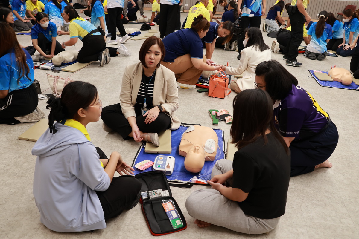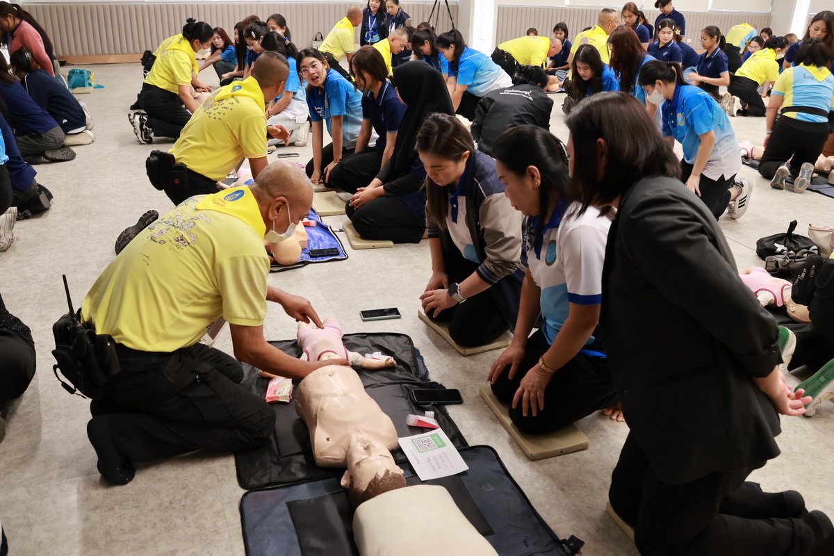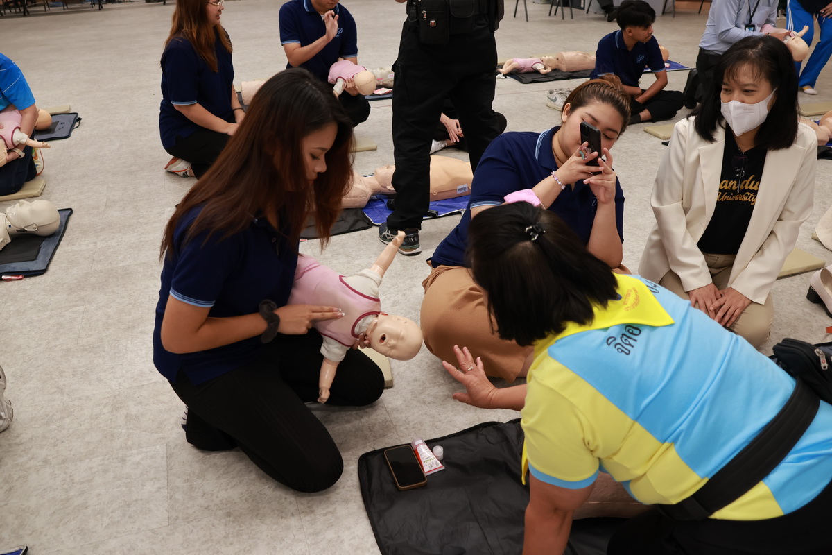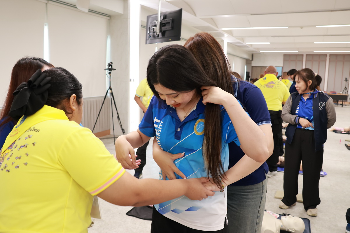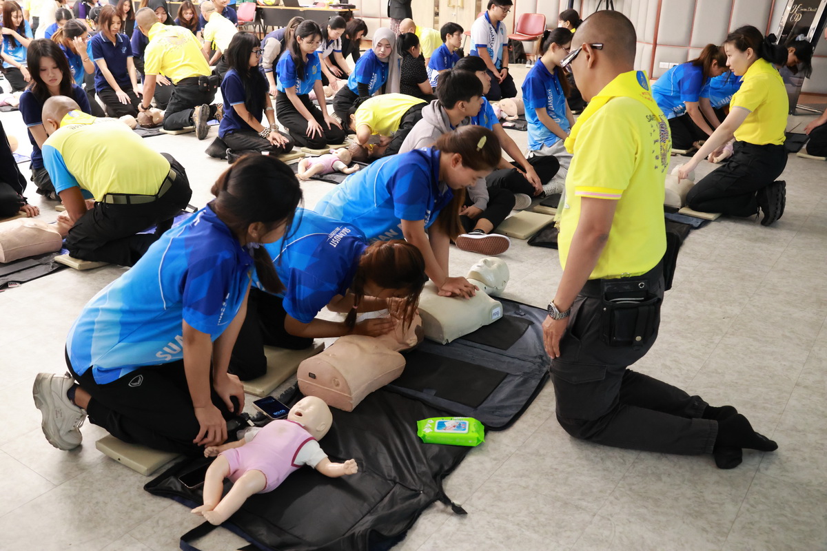 มหาวิทยาลัยสวนดุสิต ร่วมกับ ศูนย์อำนวยการใหญ่จิตอาสาพระราชทาน และมูลนิธิหัวใจแห่งประเทศไทย ในพระบรมราชูปถัมภ์ จัดโครงการ “การฝึกอบรมการช่วยชีวิตขั้นพื้นฐานเฉลิมพระเกียรติสมเด็จพระกนิษฐาธิราชเจ้า กรมสมเด็จพระเทพรัตนราชสุดาฯ สยามบรมราชกุมารี 70 พรรษา”โดยมี รศ.พัชรี สวนแก้ว รองอธิการบดีฝ่ายกิจการนักศึกษา กล่าวต้อนรับ สำหรับการฝึกอบรมภาคทฤษฎี และภาคปฏิบัติ ได้รับเกียรติจาก พลอากาศเอกสุบิน ชิวปรีชา กรมวังผู้ใหญ่ในพระองค์ 904 และทีมวิทยากรจากศูนย์อำนวยการใหญ่จิตอาสาพระราชทาน (ศอญ.จอส.พระราชทาน) บรรยายในหัวข้อ การฝึกการช่วยเหลือภาวะทางเดินหายใจอุดกั้น (Chocking) การช่วยฟื้นคืนชีพขั้นพื้นฐาน (CPR)การใช้เครื่องกระตุกหัวใจไฟฟ้าชนิดอัตโนมัติ (AED) ณ ห้อง 301 อาคาร ดร.ศิโรจน์ ผลพันธิน ศูนย์พัฒนาทุนมนุษย์ มหาวิทยาลัยสวนดุสิต เมื่อวันที่ 25 มีนาคม 2568