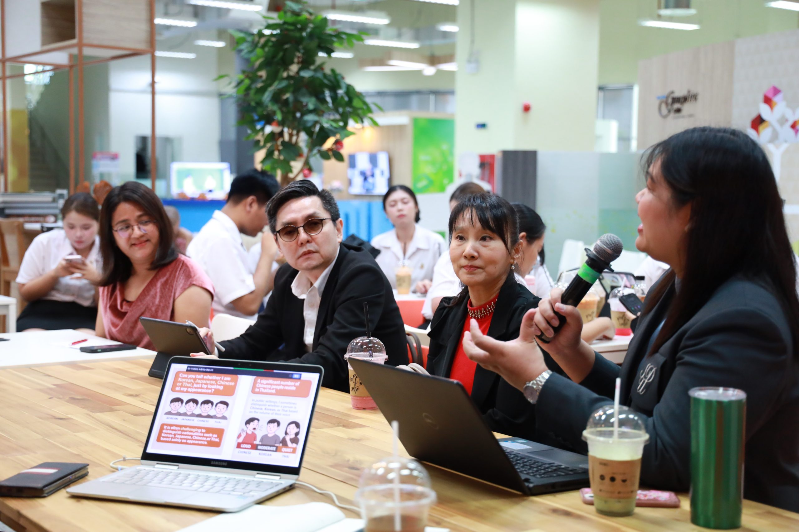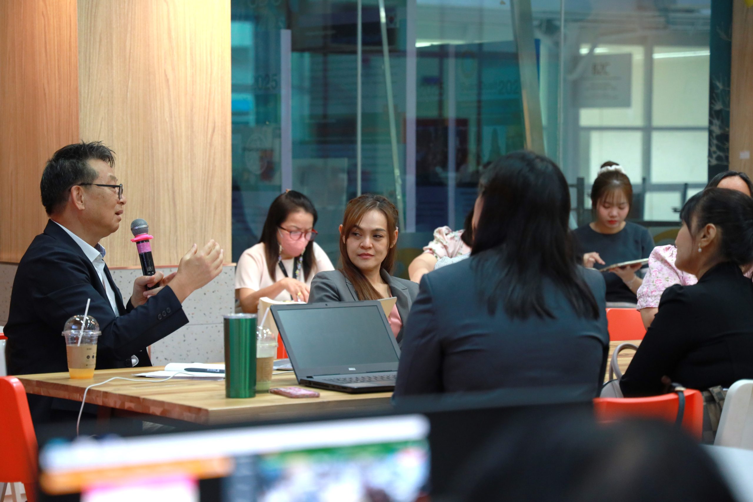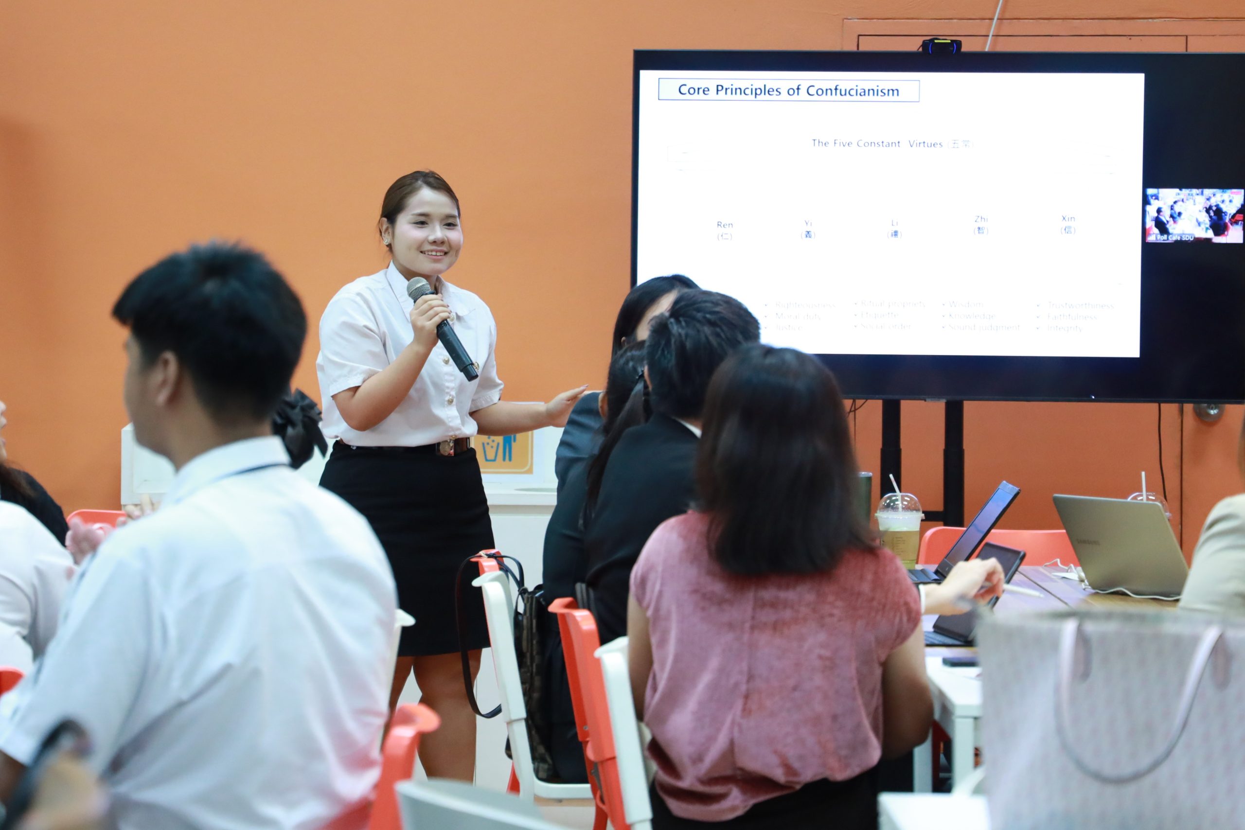 The session was moderated and interpreted by Ms. Kanokwan Kunlasuth, Assistant Dean for International Affairs, Faculty of Humanities and Social Sciences. The event was honored by the presence of Asst. Prof. Kwanhathai Choedchoo, Assistant to the President and Chair of the English for Communication Program; Asst. Prof. Dr. Boonyalak Tumnanchit, Assistant Dean for Curriculum Development; Asst. Prof. Dr. Jitchin Jittisukaphong, Assistant Dean for Policy and Planning; as well as university staff and students from the Chinese for Service Career Program.