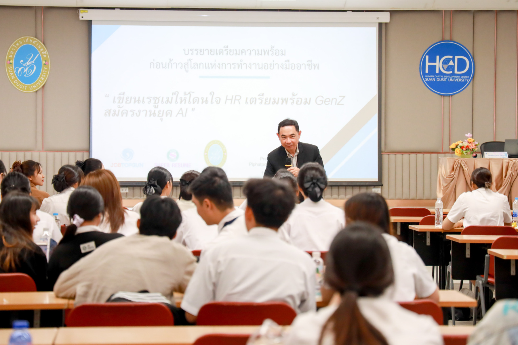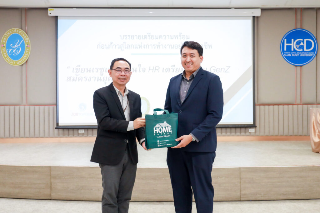The event featured Mr. Pipatpong Thepman, a special guest speaker from JOBTOPGUN Company, who delivered a talk on “How to Write a Resume that Impresses HR: Preparing Gen Z for Job Applications in the AI Era.”