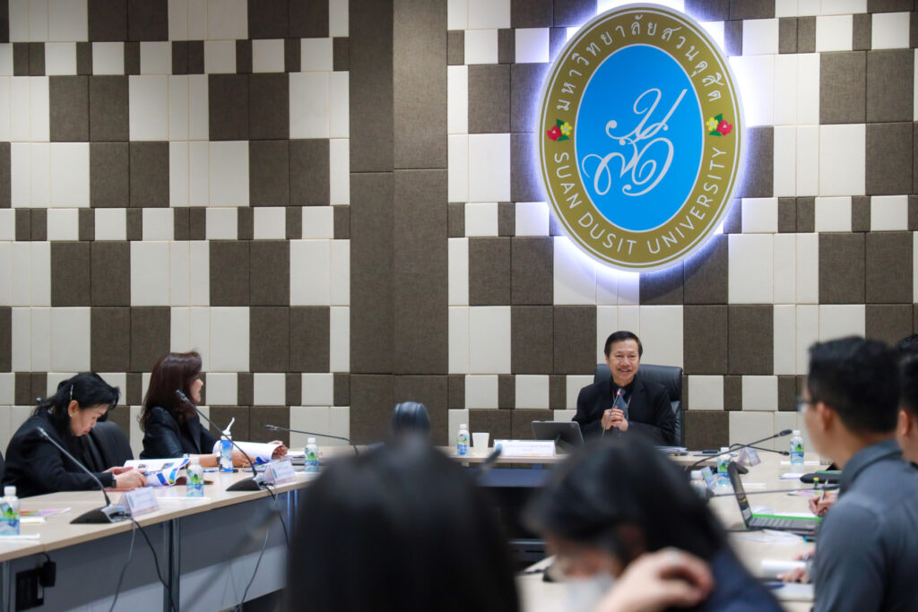 Asst. Prof. Dr. Pitauk Chancharoen, President of Suan Dusit University, chaired a strategic meeting to translate institutional performance outcomes into concrete implementation for the Faculty of Nursing. The agenda focused on key issues, including strategic concepts and priority action plans toward organizational excellence for 2025 (Retreat 2025); baseline data covering operations, financial management, and human resources; the SDU OKRs Refresh; the performance assessment under the SDU GOAL PLUS 2026 framework; and the allocation of the Strategic Fund for Fiscal Year 2026.The meeting took place on January 6, 2026, at the 5th Floor Conference Room, University Office Building, Suan Dusit University.