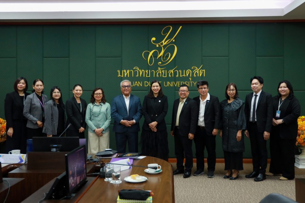 Collaborate Cooperation Projects Confucius Institute Exchange Our pride New Leadership Team News Suan Dusit University, Suphan Buri Campus, participates in the ceremony commemorating the immense benevolence of His Majesty King Bhumibol Adulyadej the Great, on the anniversary of his Royal Birth, National Day, and Father’s Day, December 5, 2025The Student Organization of Suan Dusit University, Trang Campus, participates in disaster relief efforts for flood victims in Hat Yai District, Songkhla ProvinceThe School of Tourism and Services organizes the “Warm Heart Blankets” campaign for flood-affected residents in Southern Thailand, in collaboration with the Thai Red Cross Society’s Nakhon Nayok Provincial ChapterSuan Dusit University Wins the Global Innovation Excellence Award and Six Other International Honors at KIDE 2025 in Kaohsiung, TaiwanSuan Dusit University Joins the Orientation for New Phase 4 Scholarship Recipients under the Southern Border Provinces Higher Education Development Program for the 2025 Academic YearThe Institute of Language, Arts, and Culture, Suan Dusit University, Hosts the English Boost with Kru Dew Activity for Students and StaffThe Processed Food Operations Project, Suan Dusit University, Donates Ready-to-Eat Meals to Channel 5 to Support Flood-Affected Communities in Southern ThailandThe School of Tourism and Hospitality, Suan Dusit University, Welcomes a Study Visit Delegation from I-CATS University College, Malaysia All News > SDU Direction Policy SDG Discover MapsCome and visit us. HeritageExplore out past. EventsWhat’s on at the University.