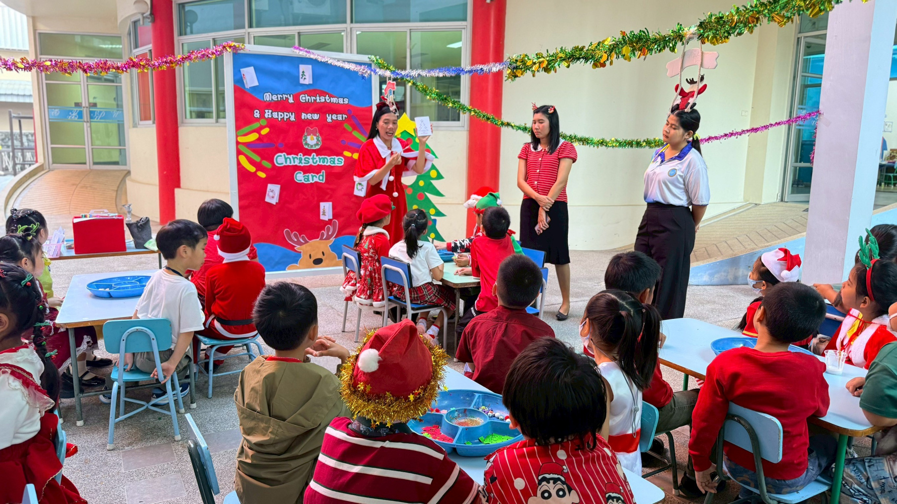 On December 25, 2025, La-orutis Demonstration School, Nakhon Nayok, organized a vibrant Christmas celebration. The festivities commenced at 8:00 AM with a series of creative and engaging rotation stations, designed to provide students with a diverse learning experience through play. The activity stations included: