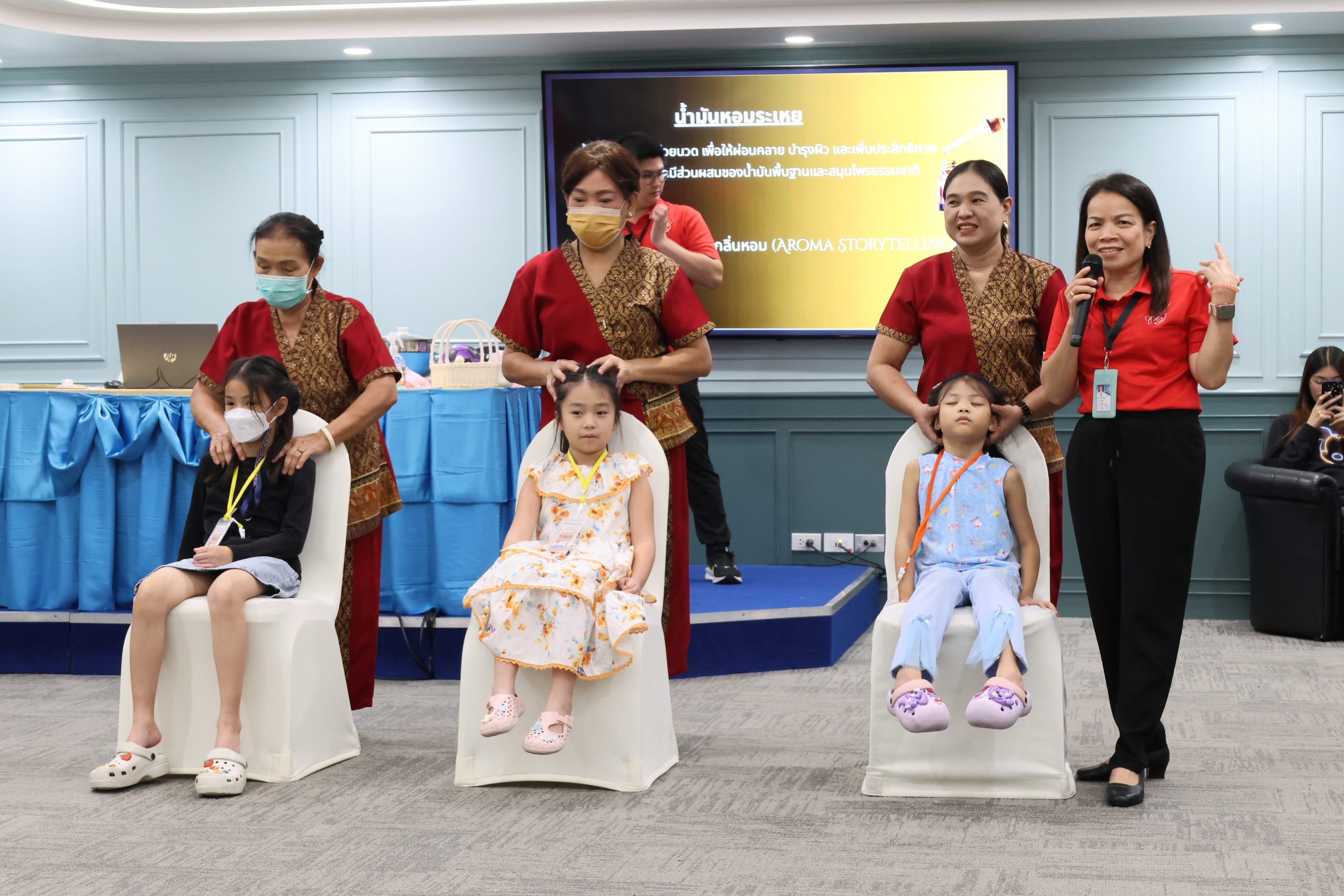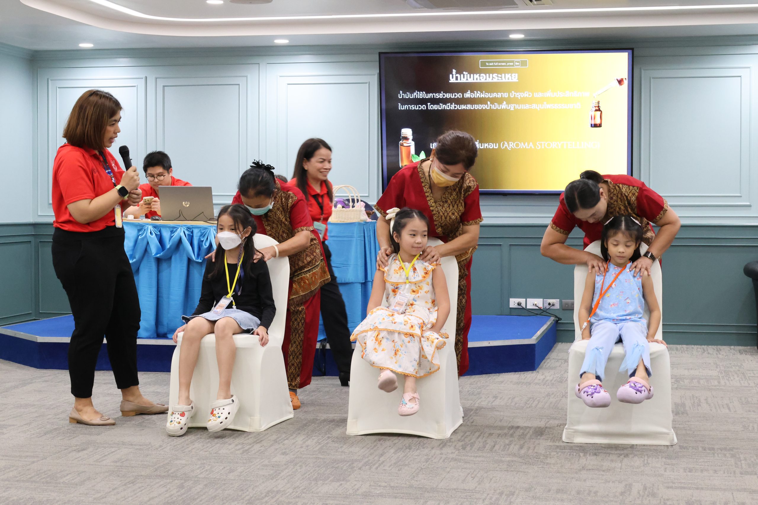 The fifth-day activities (October 10, 2025) featured various engaging sessions, such as Thai Health Activity (Herbal Compress Making), Science Activity (Creating Bottle Oil), and Traditional Thai Massage Workshop – “Herbal Harmony: The Art of Thai Oil and Herbal Compress Massage,” conducted by the Center for Body Management for Health, Office of Business Affairs, at Likhit 1 Room and Kumarika Room, Suan Dusit Place Hotel.