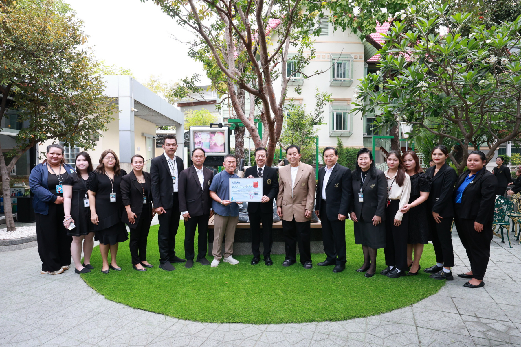 The Samet Daeng tree is considered an auspicious plant in Thai belief, symbolizing protection, prosperity, and well-being. It is believed to bring good fortune, provide shade and comfort, and protect residents from harm. The tree is known for its distinctive reddish-brown bark and vibrant red young leaves, representing vitality and beauty, making it a popular choice for landscape decoration.