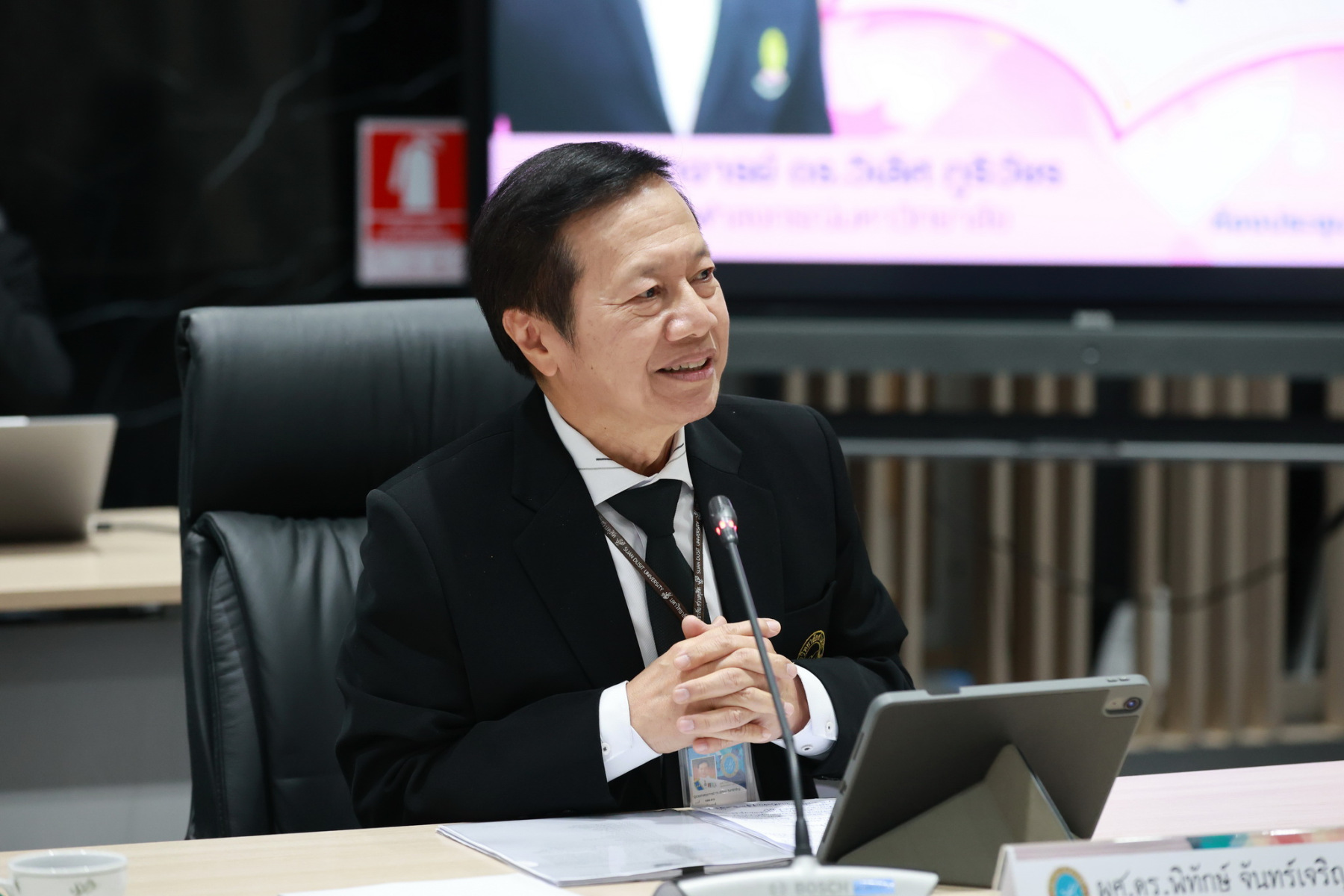 On this occasion, Asst.Prof. Dr.Pitauk Chancharoen, President of Suan Dusit University, along with Assoc.Prof. Dr.Sukhum Chaleysub, Advisor to the President, and Prof. Dr.Sirote Pholpuntin, Advisor to the President for Administration, delivered welcoming remarks and actively participated in the discussion.