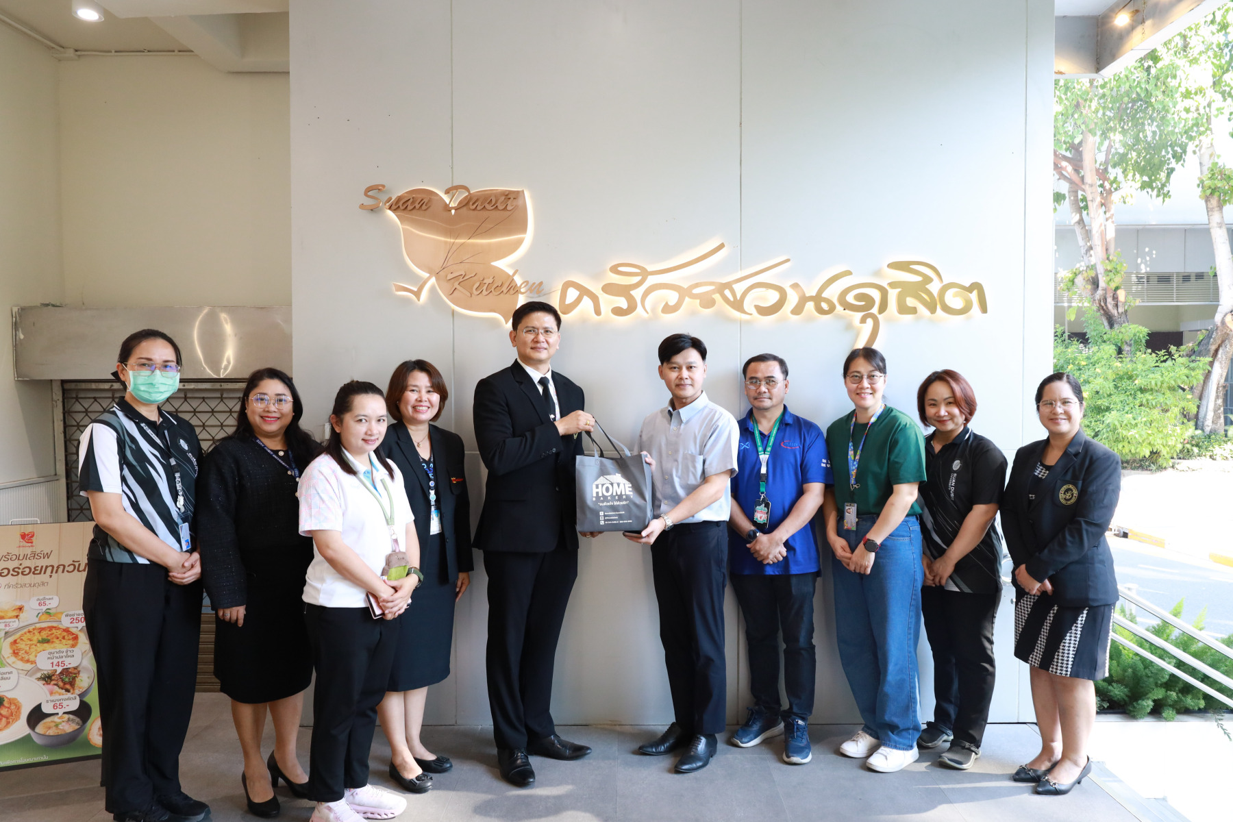 Suan Dusit Kitchen (Lunch Project 1) welcomed a delegation from Infineon Technologies Manufacturing (Thailand) Co., Ltd. for a professional study visit. Dr. Sutan Mumdaeng, Director of the Office of Business Affairs, along with Dr. Passanan Yamchamprai, Manager of Suan Dusit Kitchen, and their team, hosted the representatives to share expertise in food service and cafeteria management systems. During the visit, Suan Dusit University provided strategic guidance and recommendations for the establishment of the company’s own corporate cafeteria. The delegation also toured Kitchens 11 and 12, the central production facility of Lunch Project 1, and the Suan Dusit Home Bakery outlets. The visit took place on February 5, 2026, at the Suan Dusit Kitchen Meeting Room, Building 12.