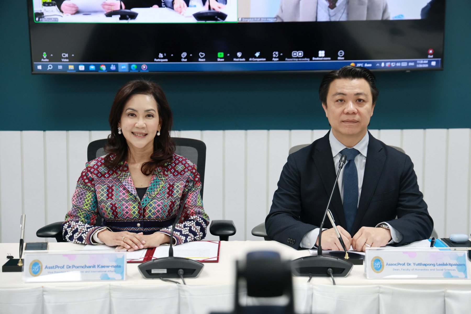 Assoc. Prof. Dr. Yutthapong Leelakitpaisarn, Dean of the Faculty of Humanities and Social Sciences at SDU, reported on the objectives of the collaboration. He stated that the partnership focused on building a robust academic network, specifically supporting the exchange of students and staff—both academic and administrative. Furthermore, the agreement encompassed joint research projects and the sharing of educational resources to create “borderless opportunities” for the younger generation.