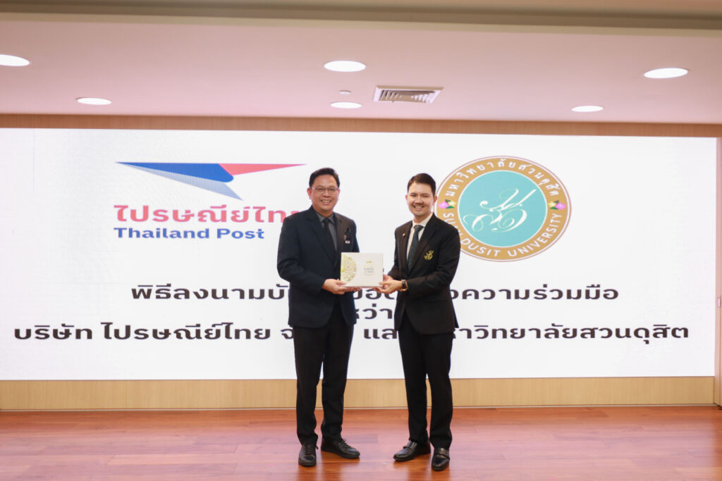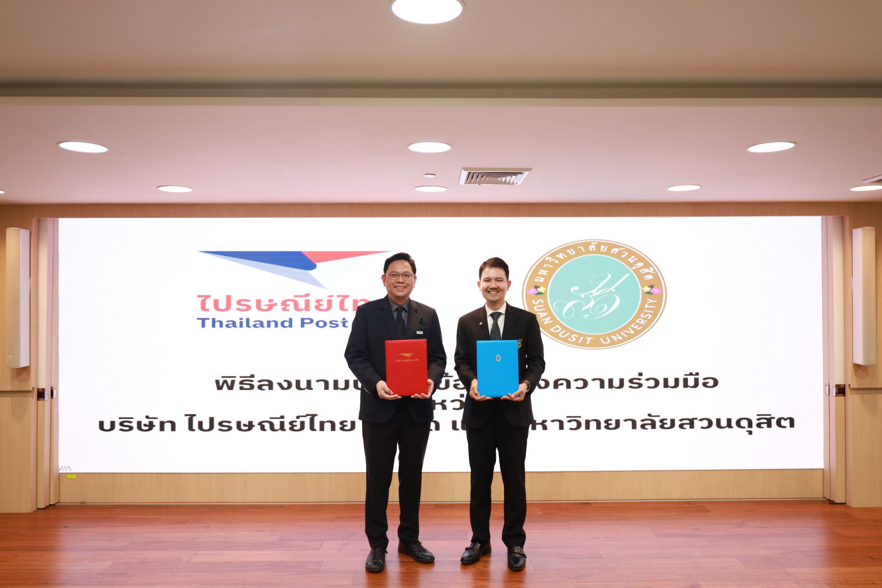 The MoU was signed by Assoc. Prof. Dr.Chanasuek Nichanong, Vice President for Administration, Research, and Innovation of Suan Dusit University, and Mr. Pitsanu Vanichpol, Chief Efficiency Development Officer and Acting Chief Strategy and Organizational Transformation Officer of Thailand Post Co., Ltd.