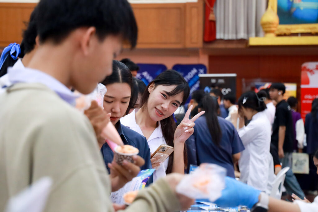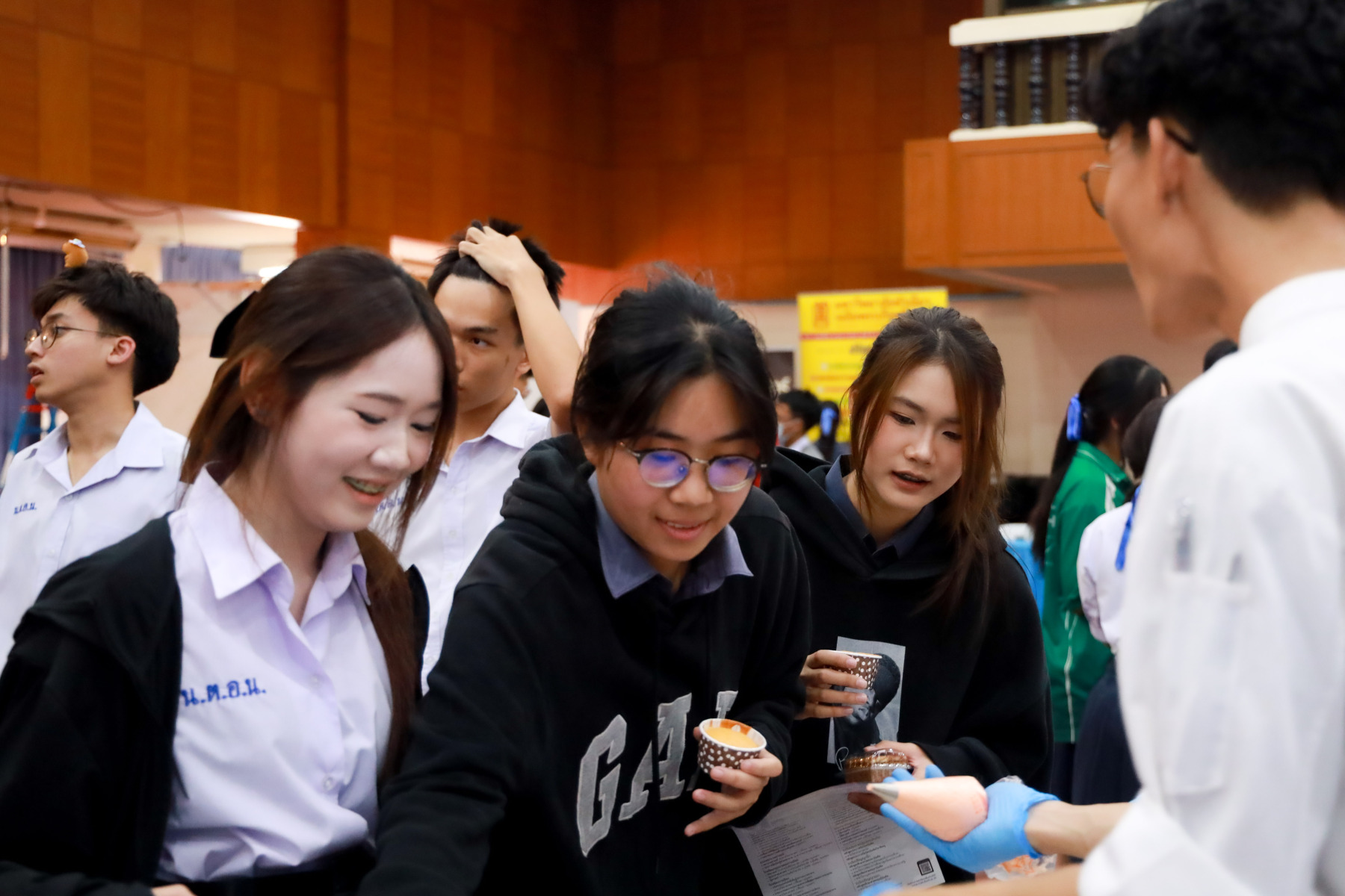 Suan Dusit University, led by the Public Relations Department, participated in the ‘Open World of Education and Careers’ exhibition at Nawaminthrachinuthit Triamudomsuksanomklao School on January 15, 2026. Students from the School of Culinary Arts, the Faculty of Science and Technology, the Faculty of Humanities and Social Sciences, and the Faculty of Management Science joined the event to provide educational guidance for Grade 12 students. The university offered comprehensive information on its programs and admissions while hosting a popular cupcake decorating workshop. Attendees also enjoyed samples of the famous Toffee Cake from Suan Dusit Home Bakery, leaving a lasting impression on all the students. The event took place at the 100th Anniversary Princess Mother Auditorium.