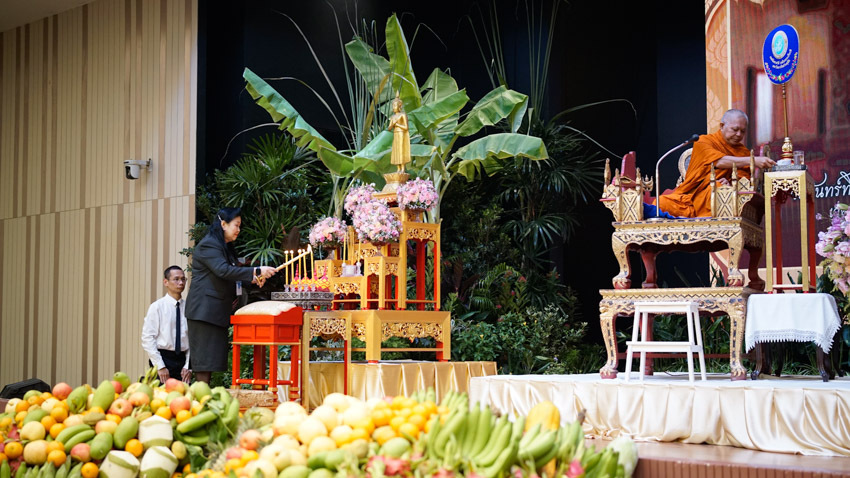 The ceremony was organized by the Student Development Division of Suan Dusit University. On this occasion, Suphan Buri Campus, the Faculty of Science and Technology, the School of Tourism and Hospitality, the Faculty of Education, and Suan Dusit Poll jointly served as hosts for the “Nakhon Khand,” which was delivered by Phra Thep Wachirawatee.