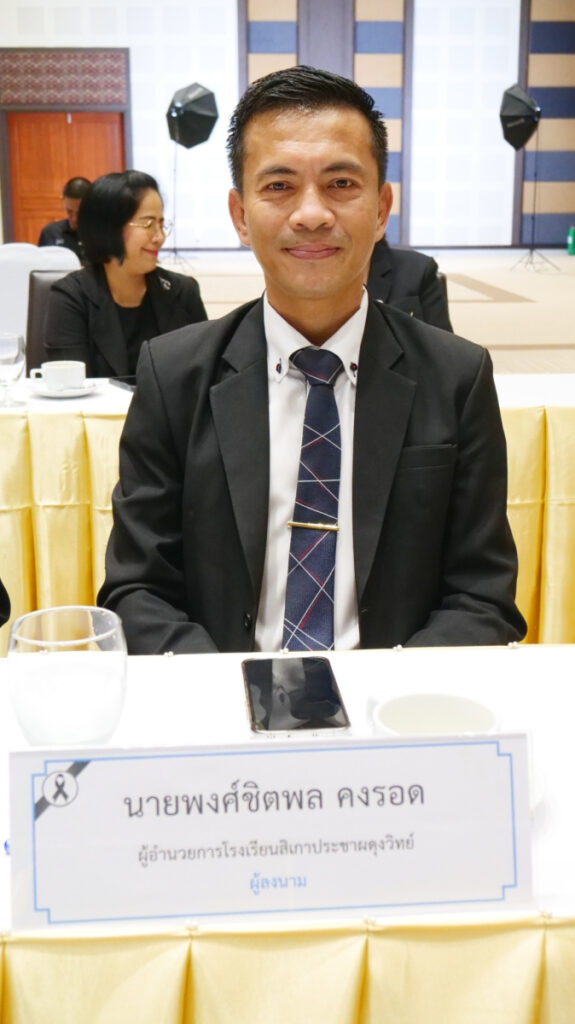 The event saw a full gathering of executives from the partner schools, including Mr. Pongchitphon Kongrod, Director of Sikao Pracha Phadungwit School; Mr. Supasit Kantasutti, Director of Municipal 6 School (Wat Tantayapirom); Mrs. Kannika Lanteng, Director of Trang Christian Suksa School; and Mr. Suriya Sarathip, Director of Huai Nang Rat Bamrung School.