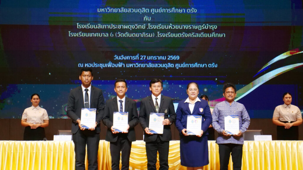 On January 27, 2026, at the Fueang Fa Auditorium, Suan Dusit University (Trang Center) hosted a landmark signing ceremony for a Memorandum of Understanding (MOU). This pivotal academic collaboration united SDU Trang Center with a network of four prominent educational institutions: Sikao Pracha Phadungwit School, Huai Nang Rat Bamrung School, Municipal 6 School (Wat Tantayapirom), and Trang Christian Suksa School.