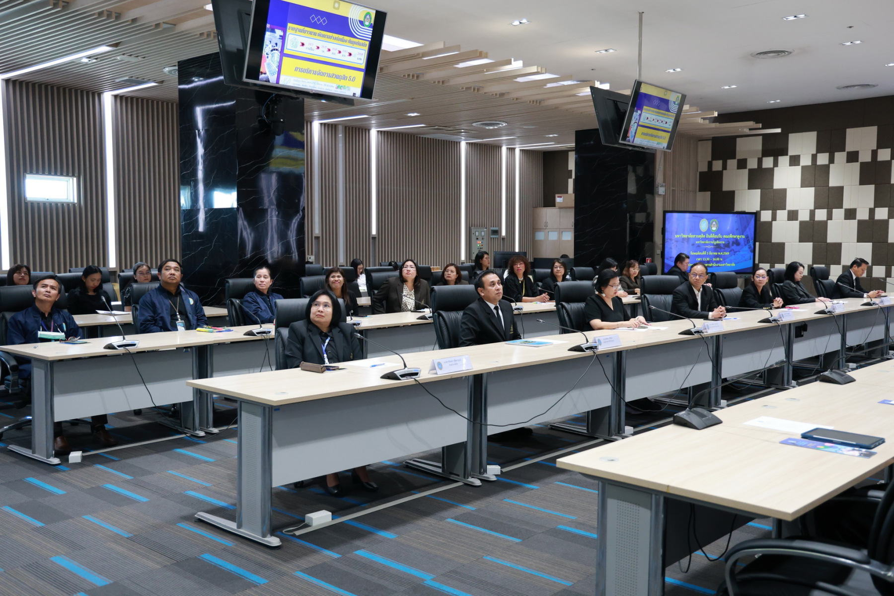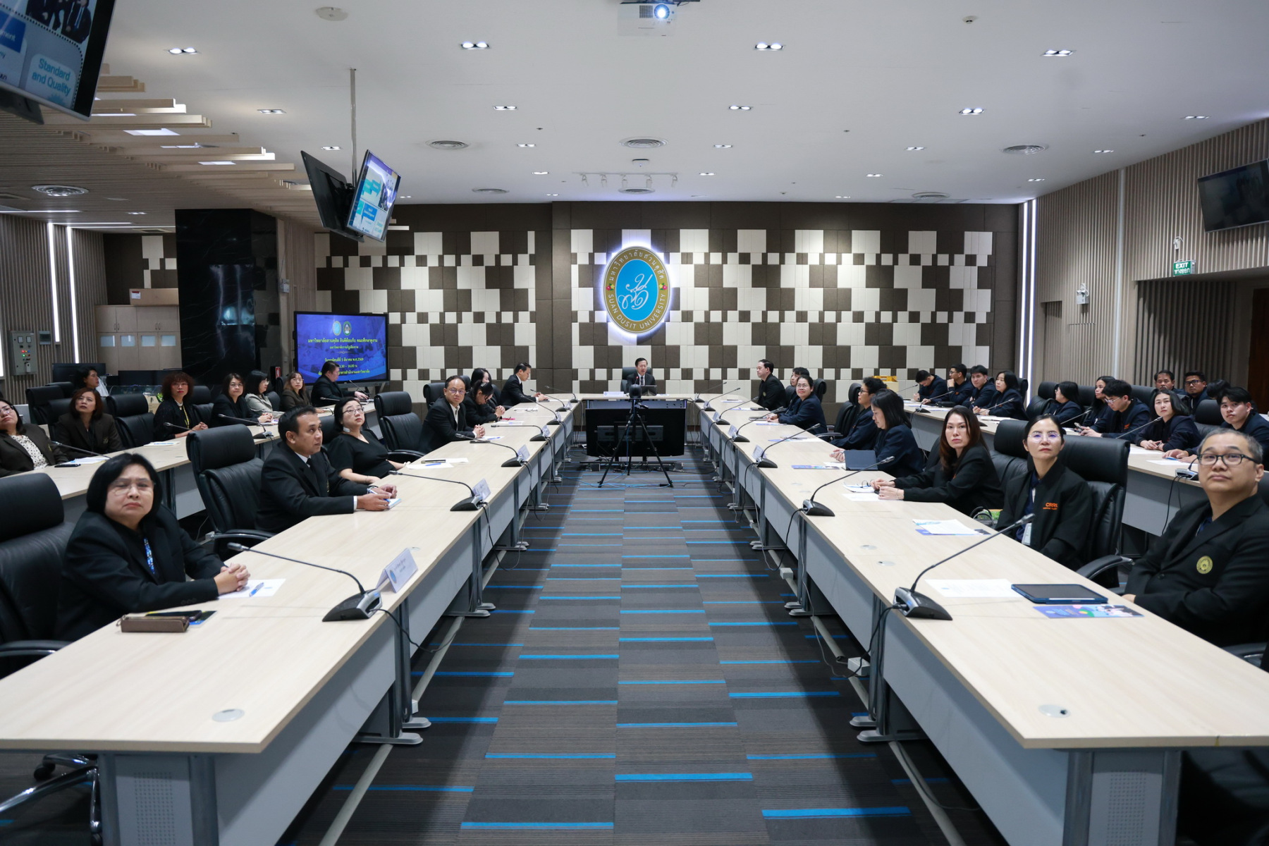 Assistant Professor Dr. Phithak Chancharoen, President of Suan Dusit University, delivered a welcome address to the delegation from Chiang Rai Rajabhat University and provided an overview of the university’s operations. The delegation, led by Assistant Professor Surachai Ularawong, Vice President of Chiang Rai Rajabhat University, along with executives and personnel in finance, accounting, procurement, legal affairs, and internal auditing, participated in the study visit and knowledge exchange. Executives and staff from the Division of Finance, Procurement, Human Resource Management Division, Division of Buildings and Facilities, Legal Office, and Internal Audit Office of Suan Dusit University also joined in welcoming the delegation and exchanging knowledge.