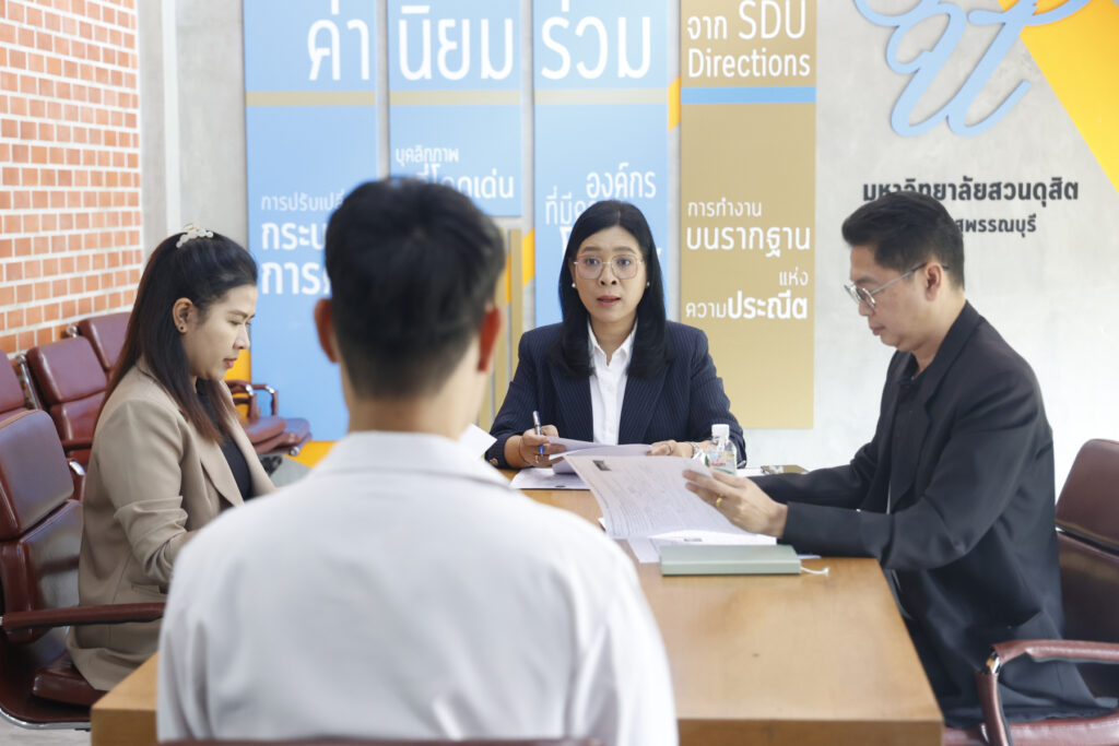 The interviews were held on Thursday, March 5, 2026, from 14:00 hrs. onwards at Meeting Room 1, 2nd Floor, New Learning Center Building (SDU Library@Suphanburi), Suan Dusit University, Suphanburi Campus.