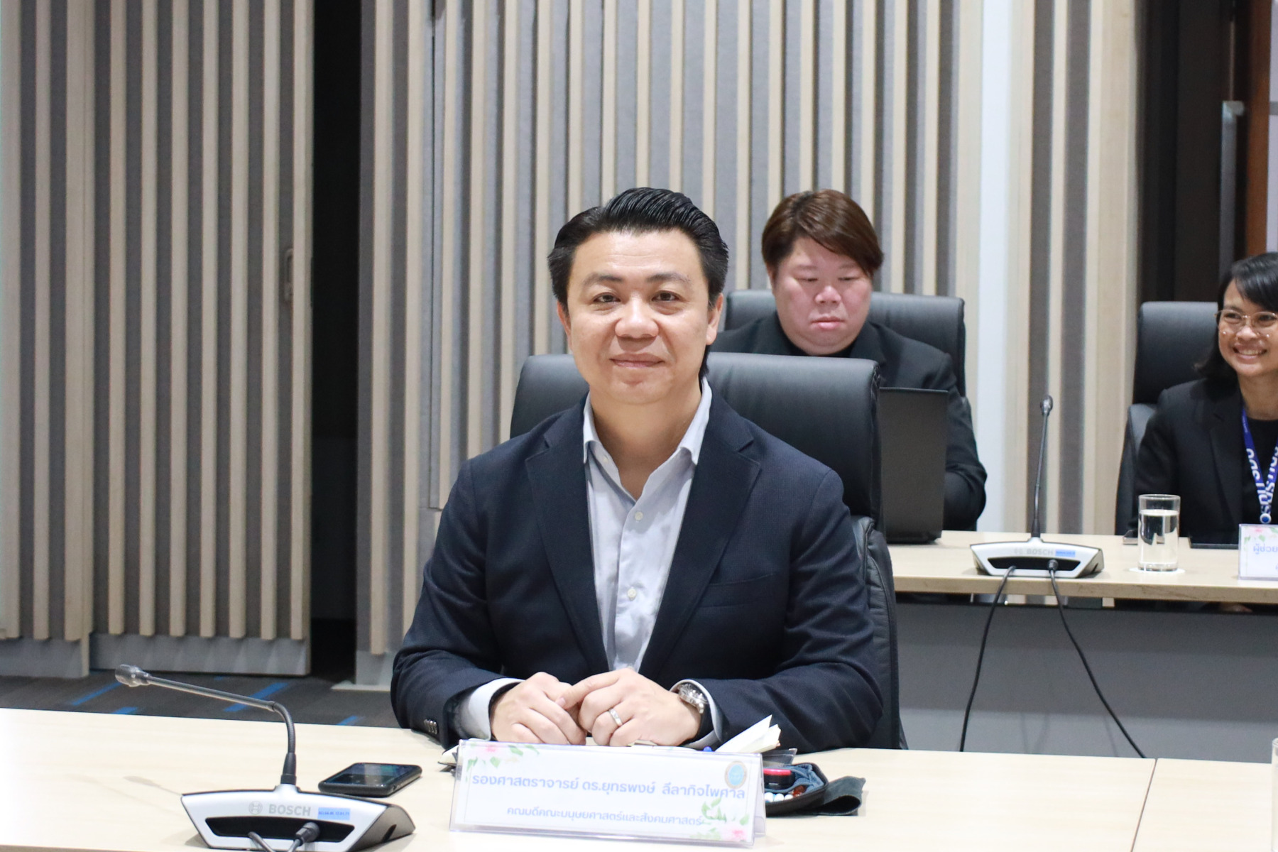 The meeting was presided over by Asst. Prof. Dr. Pornchanit Kaew-nate, Vice President for Academic and International Affairs. The primary objectives of the session were to communicate organizational policies and formally designate key responsibilities across various working committees to ensure seamless execution.