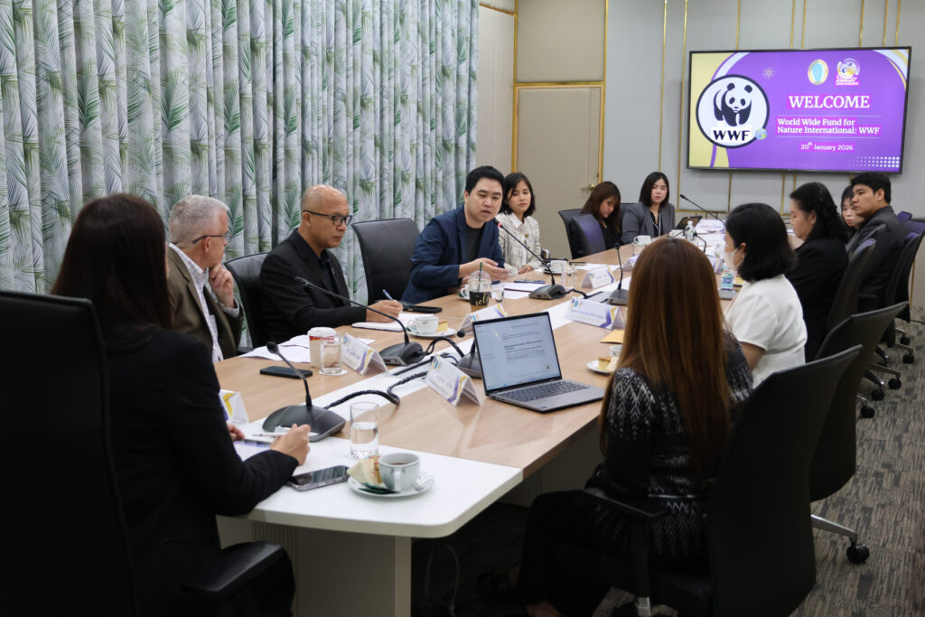 During the event, Asst. Prof. Dr. Pimmada Wichasin, Dean of the School of Tourism and Hospitality Management, presents the objectives of this ongoing collaboration. The ceremony is honored by the presence of Asst. Prof. Dr. Pornchanit Kaew-nate, Vice President for Academic and International Affairs, who joins representatives from WWF Thailand in a formal signing ceremony. The meeting takes place at Lampong 3 Meeting Room, Suan Dusit University.