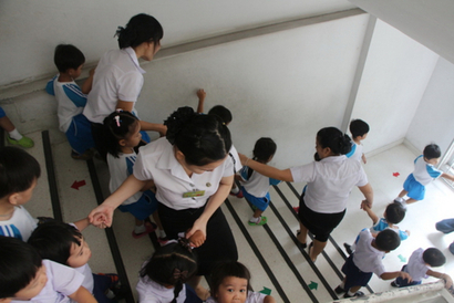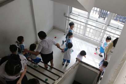 โรงเรียนสาธิตละออุทิศ ซ้อมหนีอัคคีภัย ประจำปีการศึกษา 2557