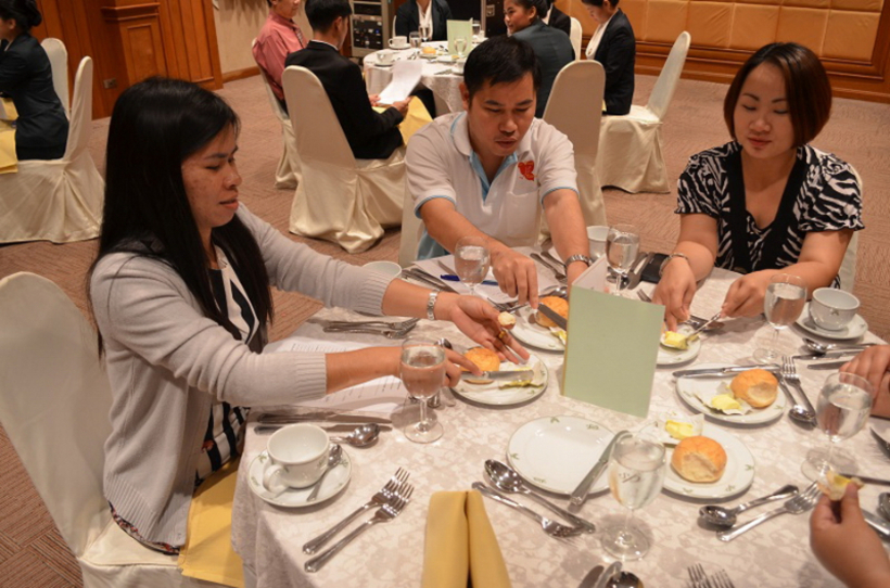 นายศิริ วัฒนาพร หัวหน้าแผนกจัดเลี้ยง โรงแรมสวนดุสิต เพลส มหาวิทยาลัยราชภัฏสวนดุสิต เป็นวิทยากรโครงการอบรมพัฒนาพนักงาน เพื่อเป็นวิทยากรอย่างมืออาชีพ ในหัวข้อ “การรับประทานอาหารแบบตะวันตก” รวมถึงการใช้เครื่องมือ และภาชนะต่างๆ บนโต๊ะอาหาร ให้กับพนักงานโรงแรมสวนดุสิต เพลส, ครัวสวนดุสิต และสำนักงานผู้อำนวยการ สำนักกิจการพิเศษ ณ ห้องประชุมกุมาริกา โรงแรมสวนดุสิต เพลส เมื่อวันที่ 18 กันยายน 2557