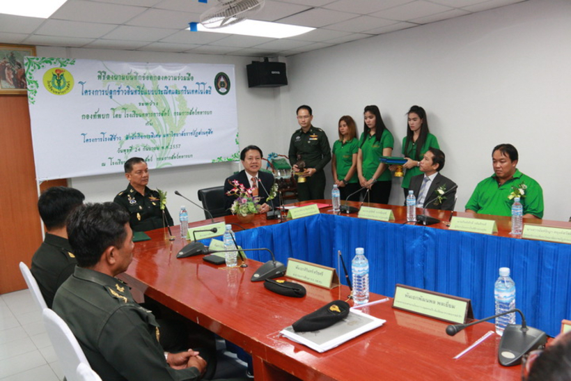 โครงการโรงสีข้าว สำนักกิจการพิเศษ มหาวิทยาลัยราชภัฏสวนดุสิต ร่วมกับ โรงเรียนทหารการสัตว์ กรมการสัตว์ทหารบก กองทัพบก ลงนามบันทึกข้อตกลงความร่วมมือ โครงการปลูกข้าวอินทรีย์แบบประณีตและกรีนเทคโนโลยี โดยได้รับเกียรติจาก ผศ.ดร.พิทักษ์  จันทร์เจริญ อธิการบดีมหาวิทยาลัยราชภัฏสวนดุสิต และพลตรีชาติชาย  อ่อนน่วม เจ้ากรมการสัตว์ทหารบก ร่วมลงนาม โดยมีผู้บริหาร และเจ้าหน้าที่ เข้าร่วมในพิธี ณ โรงเรียนทหารการสัตว์ กรมการสัตว์ทหารบก จ.นครนายก เมื่อวันพุธที่ 24 กันยายน 2557 (ภาพ/ข่าว:พศิน)