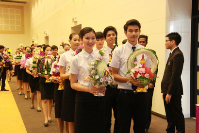 ดร.พรชนิตว์ แก้วเนตร คณบดีโรงเรียนการท่องเที่ยวและการบริการ เป็นประธานในพิธีไหว้ครู กตัญญูฑิตา ปีการศึกษา 2557 โดยมี ผู้บริหาร คณาจารย์ เจ้าหน้าที่ และนักศึกษา เข้าร่วมงาน ภายในงานมีการทำบุญตักบาตรข้าวสารอาหารแห้ง ไหว้ครู กตัญญูฑิตา มอบประกาศนียบัตรนักศึกษาเรียนดี และบายศรีสู่ขวัญ ณ อาคารรักตะกนิษฐ ชั้น 2 เมื่อวันที่ 25 กันยายน 2557 (ภาพ/ข่าว:พศิน)