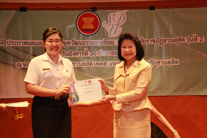 ผศ.ดร.นิรมิต  คุณานุรักษ์ รองอธิการบดีฝ่ายวิเทศสัมพันธ์ มหาวิทยาลัยราชภัฏสวนดุสิต ให้เกียรติเป็นประธาน พิธีประกาศผล มอบรางวัล พร้อมกล่าวแสดงความยินดี พร้อมเปิดตัวทูตวัฒนธรรมอาเซียนฯ ในโครงการสรรหาทูตวัฒนธรรมอาเซียน ( SDU ASEAN Ambassador) รุ่นที่ 2 โดยมี อ.ธนาศิริ  ชะระอ่ำ ผู้ช่วยอธิการบดีฝ่ายวิเทศสัมพันธ์ กล่าวรายงานโครงการ และติดเข็มกลัด SDU ASEAN Ambassador และ ดร.ญาลิสาฐ์  ต้นสอน  เป็นผู้มอบริสแบนด์ ให้นักศึกษาที่ได้รับตำแหน่งจำนวน 6 คน  จากนักศึกษาที่ผ่านรอบสุดท้ายจำนวน16 คน  เมื่อวันที่ 30 กันยายน 2557  ณ ห้องกุมาริกา โรงแรมสวนดุสิต เพลส (ภาพ/ข่าว:พศิน)