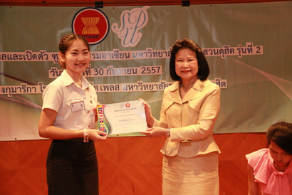 ผศ.ดร.นิรมิต  คุณานุรักษ์ รองอธิการบดีฝ่ายวิเทศสัมพันธ์ มหาวิทยาลัยราชภัฏสวนดุสิต ให้เกียรติเป็นประธาน พิธีประกาศผล มอบรางวัล พร้อมกล่าวแสดงความยินดี พร้อมเปิดตัวทูตวัฒนธรรมอาเซียนฯ ในโครงการสรรหาทูตวัฒนธรรมอาเซียน ( SDU ASEAN Ambassador) รุ่นที่ 2 โดยมี อ.ธนาศิริ  ชะระอ่ำ ผู้ช่วยอธิการบดีฝ่ายวิเทศสัมพันธ์ กล่าวรายงานโครงการ และติดเข็มกลัด SDU ASEAN Ambassador และ ดร.ญาลิสาฐ์  ต้นสอน  เป็นผู้มอบริสแบนด์ ให้นักศึกษาที่ได้รับตำแหน่งจำนวน 6 คน  จากนักศึกษาที่ผ่านรอบสุดท้ายจำนวน16 คน  เมื่อวันที่ 30 กันยายน 2557  ณ ห้องกุมาริกา โรงแรมสวนดุสิต เพลส (ภาพ/ข่าว:พศิน)