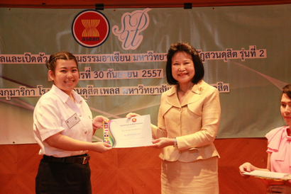 ผศ.ดร.นิรมิต  คุณานุรักษ์ รองอธิการบดีฝ่ายวิเทศสัมพันธ์ มหาวิทยาลัยราชภัฏสวนดุสิต ให้เกียรติเป็นประธาน พิธีประกาศผล มอบรางวัล พร้อมกล่าวแสดงความยินดี พร้อมเปิดตัวทูตวัฒนธรรมอาเซียนฯ ในโครงการสรรหาทูตวัฒนธรรมอาเซียน ( SDU ASEAN Ambassador) รุ่นที่ 2 โดยมี อ.ธนาศิริ  ชะระอ่ำ ผู้ช่วยอธิการบดีฝ่ายวิเทศสัมพันธ์ กล่าวรายงานโครงการ และติดเข็มกลัด SDU ASEAN Ambassador และ ดร.ญาลิสาฐ์  ต้นสอน  เป็นผู้มอบริสแบนด์ ให้นักศึกษาที่ได้รับตำแหน่งจำนวน 6 คน  จากนักศึกษาที่ผ่านรอบสุดท้ายจำนวน16 คน  เมื่อวันที่ 30 กันยายน 2557  ณ ห้องกุมาริกา โรงแรมสวนดุสิต เพลส (ภาพ/ข่าว:พศิน)