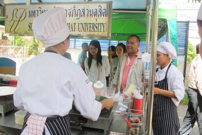 นายนำชัย กฤษณาสกุล ผู้อำนวยการวิทยาลัยชุมชนสตูล จ.สตูล นำคณะอาจารย์และบุคลากรของวิทยาลัยชุมชนสตูลเข้าศึกษาดูงานด้านอาหารและเครื่องดื่มในโครงการธุรกิจจำลองเพื่อการฝึกประสบการณ์วิชาชีพ (Milk Club) และโครงการธุรกิจอาหารขนาดย่อมร้านเครปต้นกล้าของมหาวิทยาลัยราชภัฏสวนดุสิต ศูนย์การศึกษานอกที่ตั้ง ตรัง โดยมี อาจารย์พรพรหม เสียงสอน ผู้ช่วยผู้อำนวยการศูนย์ฯตรัง ฝ่ายบริหาร และ อาจารย์สุภาวดี นาคบรรพ์ ผู้ช่วยผู้อำนวยการศูนย์ฯตรังประจำศูนย์การเรียนห้วยยอด ให้การต้อนรับ ในการเข้าศึกษาดูงานของวิทยาลัยชุมชนสตูล ครั้งนี้ เพื่อเป็นข้อมูลในการจัดทำโครงการให้ความรู้ด้านอาหารหลักสูตรระยะสั้นให้กับประชาชนในพื้นที่ จังหวัดสตูล และมีแนวคิดในการทำธุรกิจจำลอง โดยมี โครงการธุรกิจจำลอง (Milk Club) และ ร้านเครปต้นกล้าฯ ของศูนย์ฯตรัง เป็นต้นแบบ ในวันที่พุธที่ 1 ตุลาคม 2557  ณ ศูนย์การศึกษานอกที่ตั้ง ตรัง