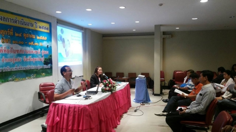 มสด. นำเสนอผลการดำเนินงาน “โครงการพัฒนาศักยภาพบุคลากรเมืองโบราณอู่ทองด้านการให้บริการ”ประจำปีงบประมาณ 2557
